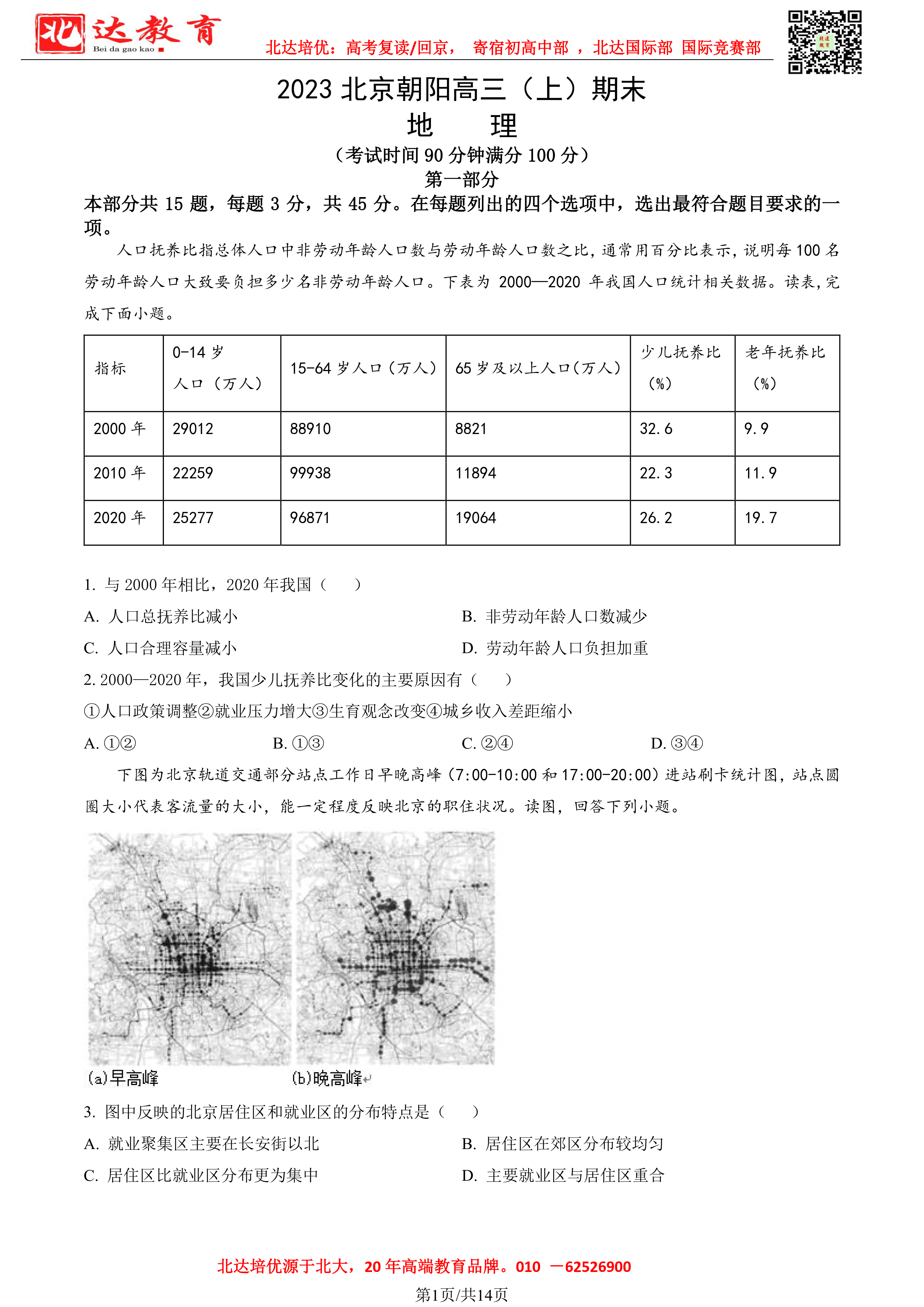 2023北京各区期末考试已陆续开始,为了方便同学们查找相关试题,admw360高考复读学校整理了2023年北京朝阳区高三上学期期末地理试题及答案,附高清电子版,欢迎为大家下载分享~