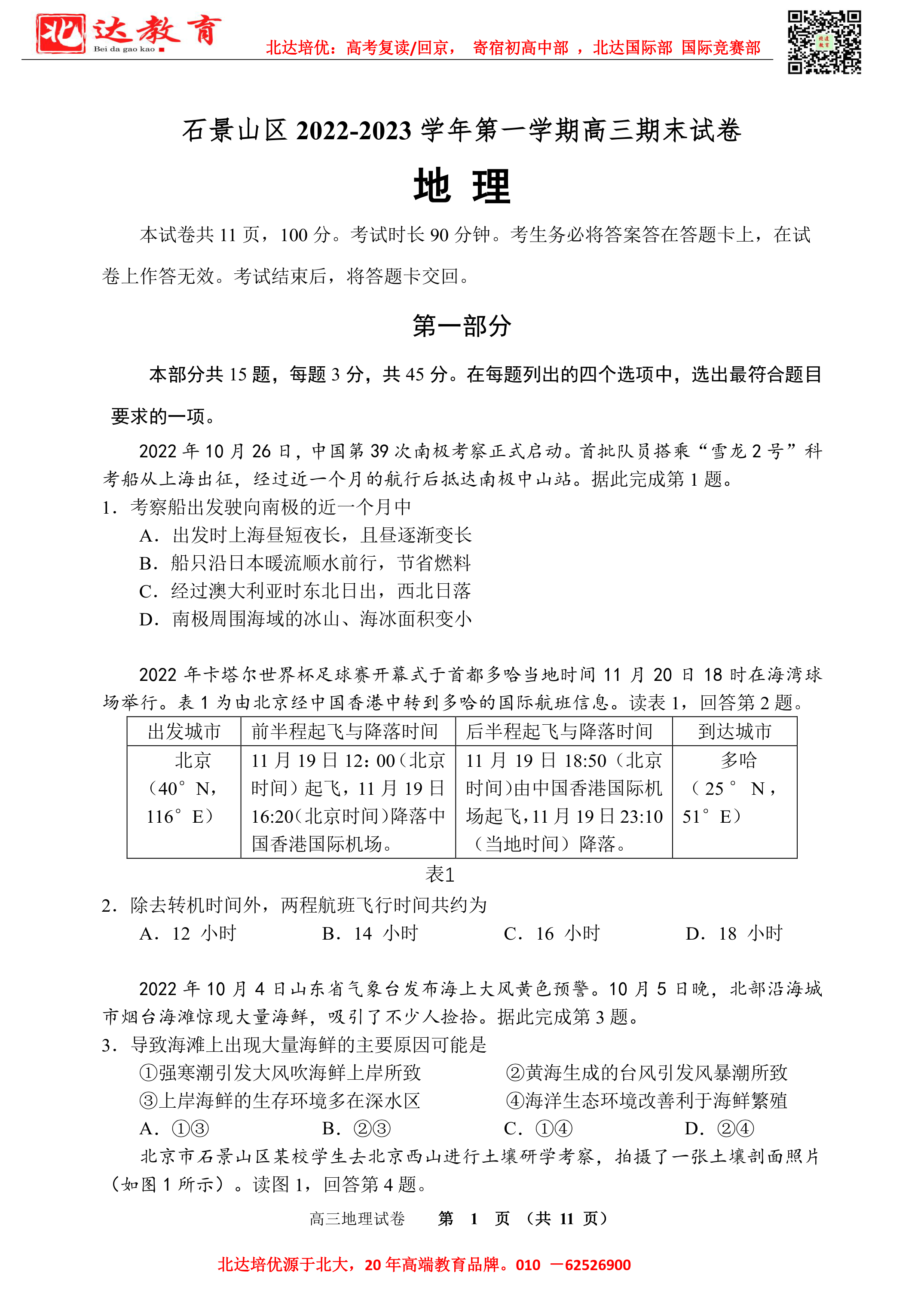 2023北京各区期末考试已陆续开始,为了方便同学们查找相关试题,admw360高考复读学校整理了2023年北京石景山区高三上学期期末地理试题及答案,附高清电子版,欢迎为大家下载分享~