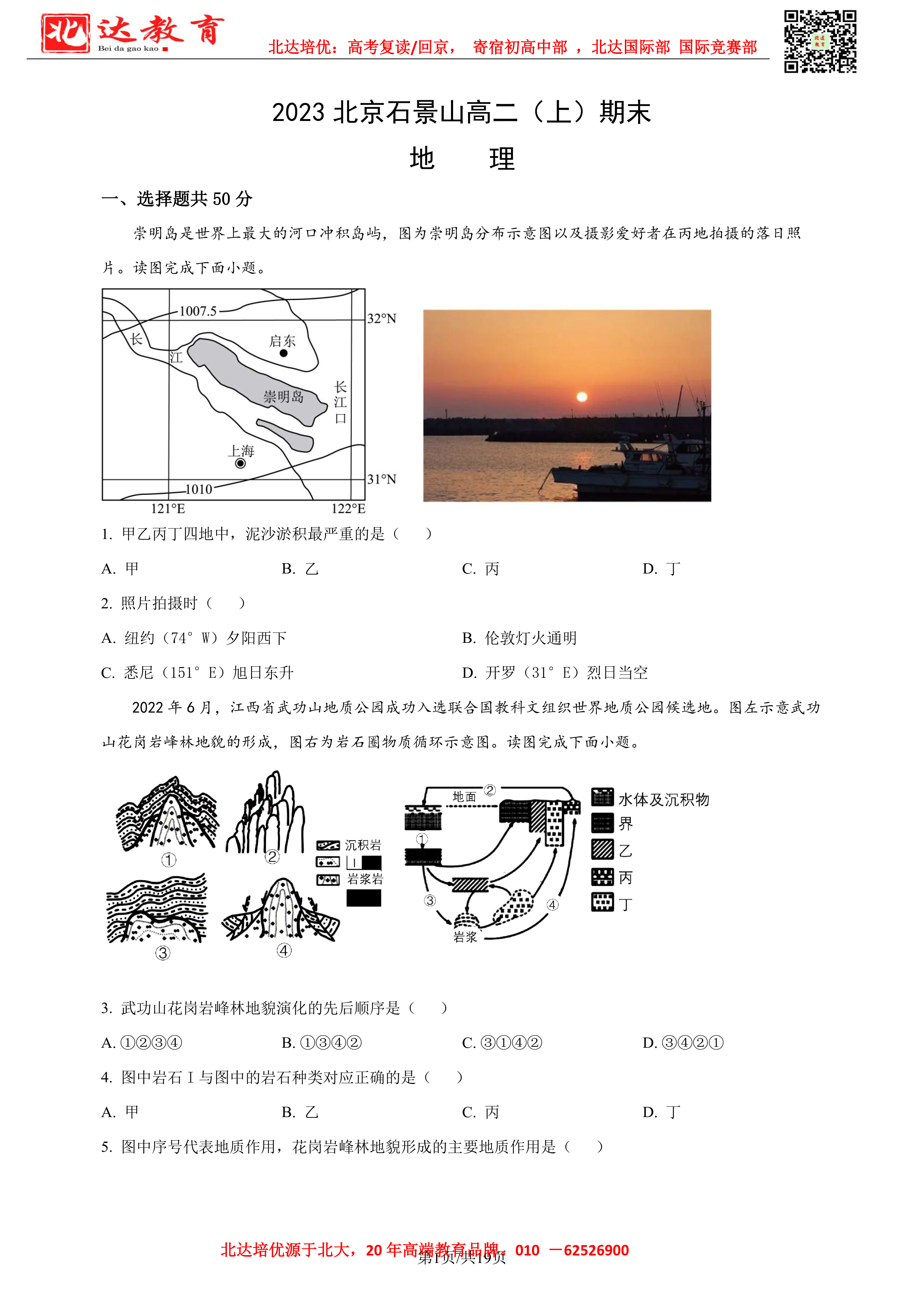 2023北京各区期末考试已陆续开始,为了方便同学们查找相关试题,admw360高考复读学校整理了2023年北京石景山区高二上学期期末地理试题及答案,附高清电子版,欢迎为大家下载分享~
