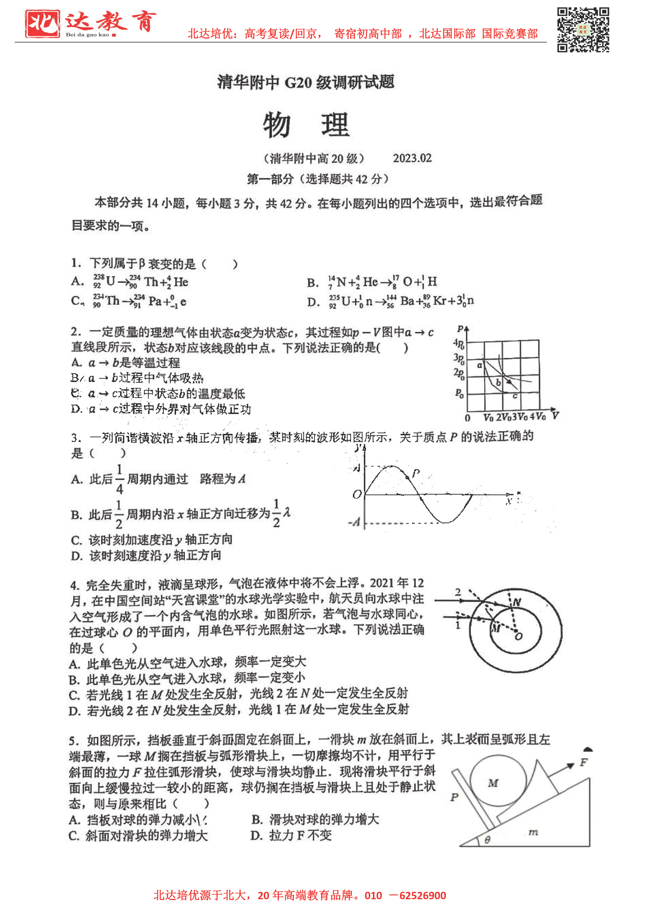 admw360高考复读学校整理了2023北京清华附中高三2月开学考物理试题及答案,附高清电子版,欢迎为大家下载分享~