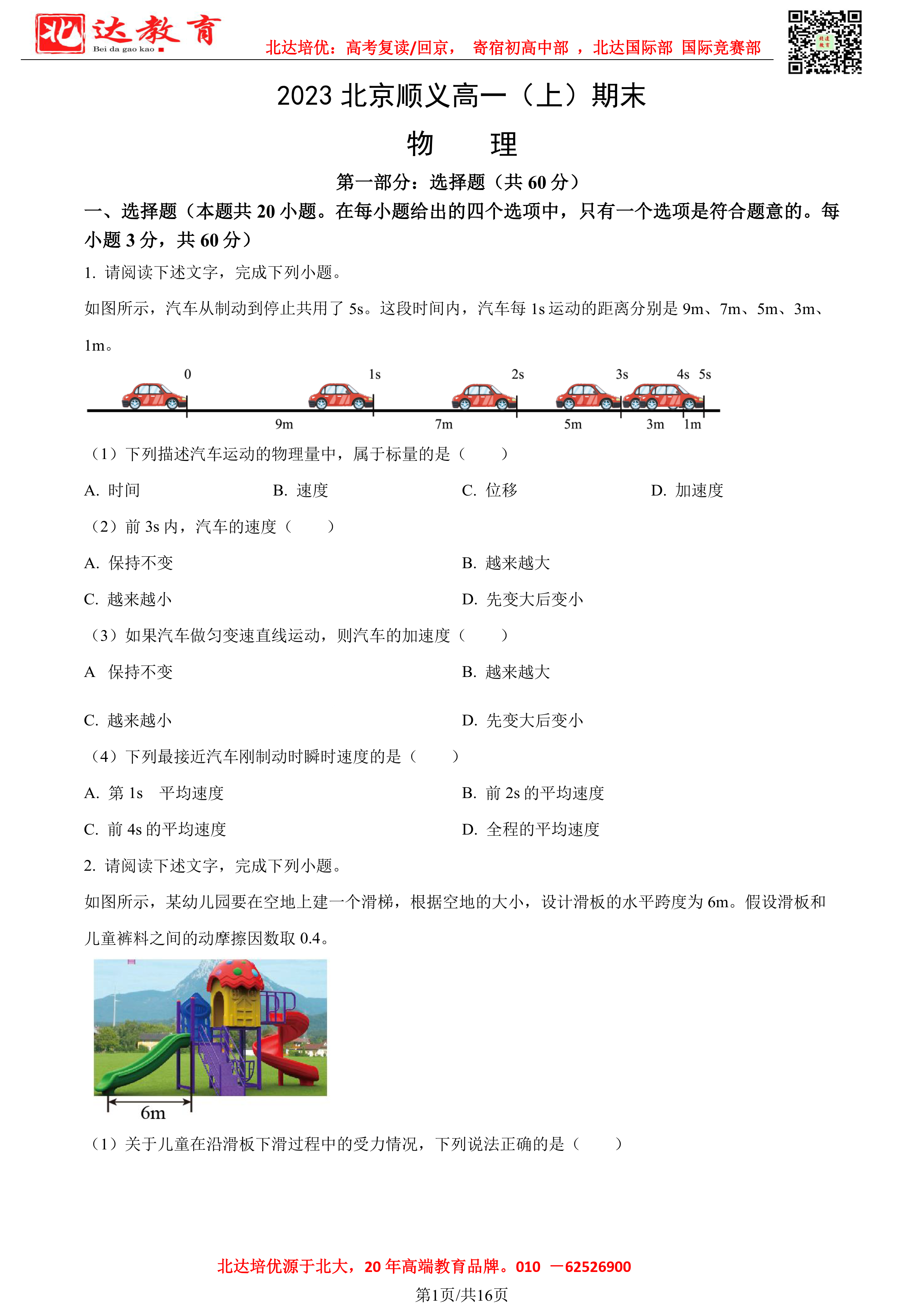 2023北京各区期末考试已陆续开始,为了方便同学们查找相关试题,admw360高考复读学校整理了2023年北京顺义区高一上学期期末物理试题及答案,附高清电子版,欢迎为大家下载分享~