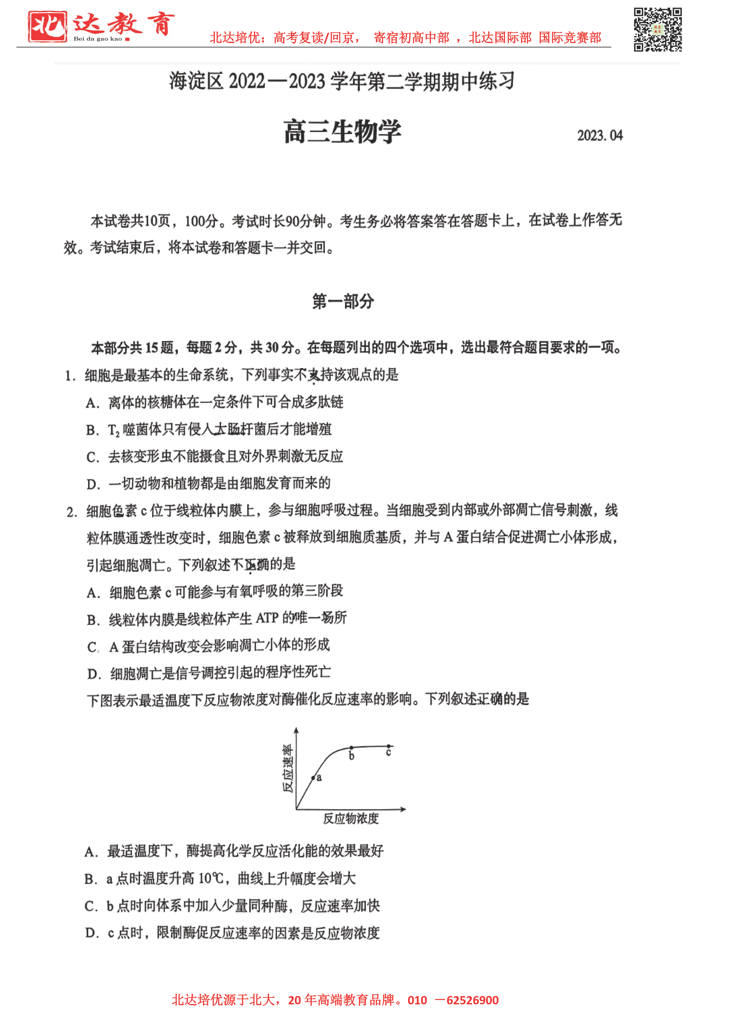 2023年北京朝阳高三一模考预计于4月初启动。为了方便大家查找朝阳高三一模试题及答案,admw360高考复读学校整理了2023年北京海淀高三一模生物试题及答案,分享给大家。