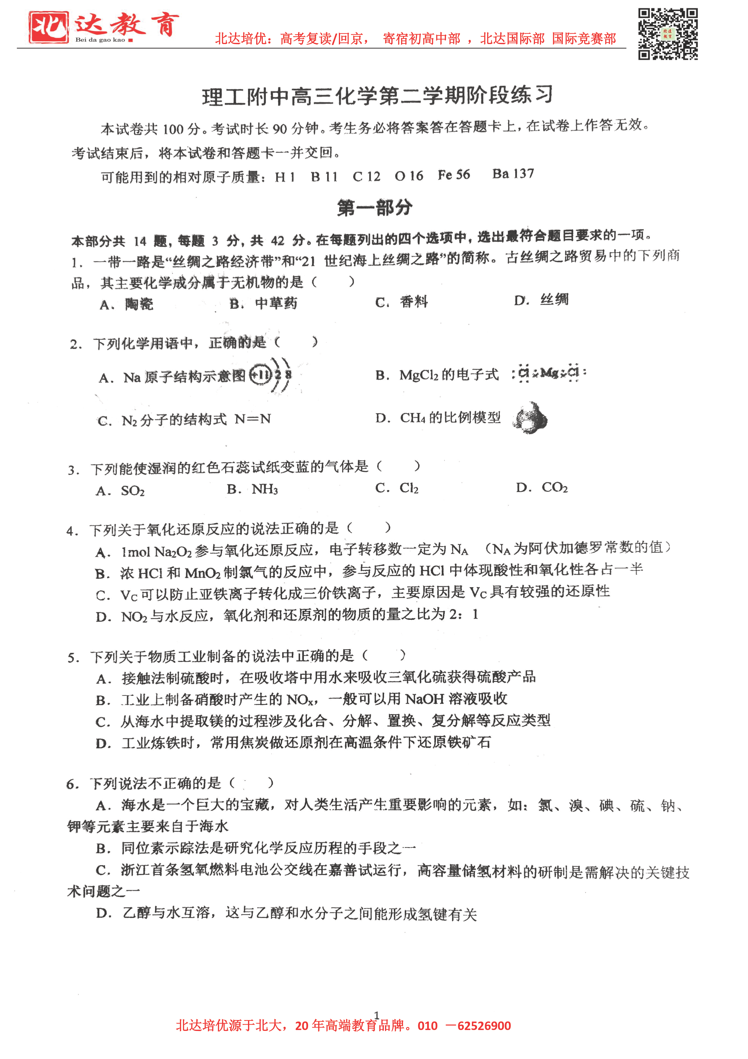 2023北京各区高三零模已于3月初进行,admw360高考复读学校整理了2023北理工大附中高三3月月考化学试题及答案,同学们可以在线下载学习!
