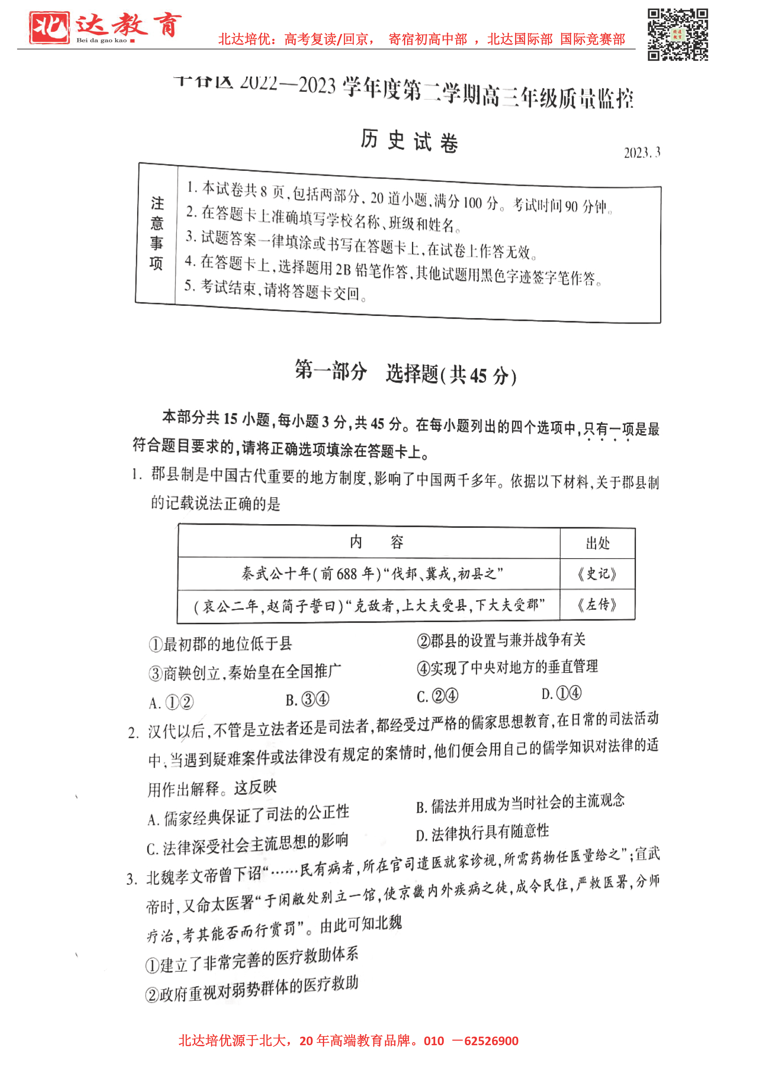 2023北京各区高三零模已于3月初进行,admw360高考复读学校整理了2023北京平谷区高三零模历史试题及答案,同学们可以在线下载学习!