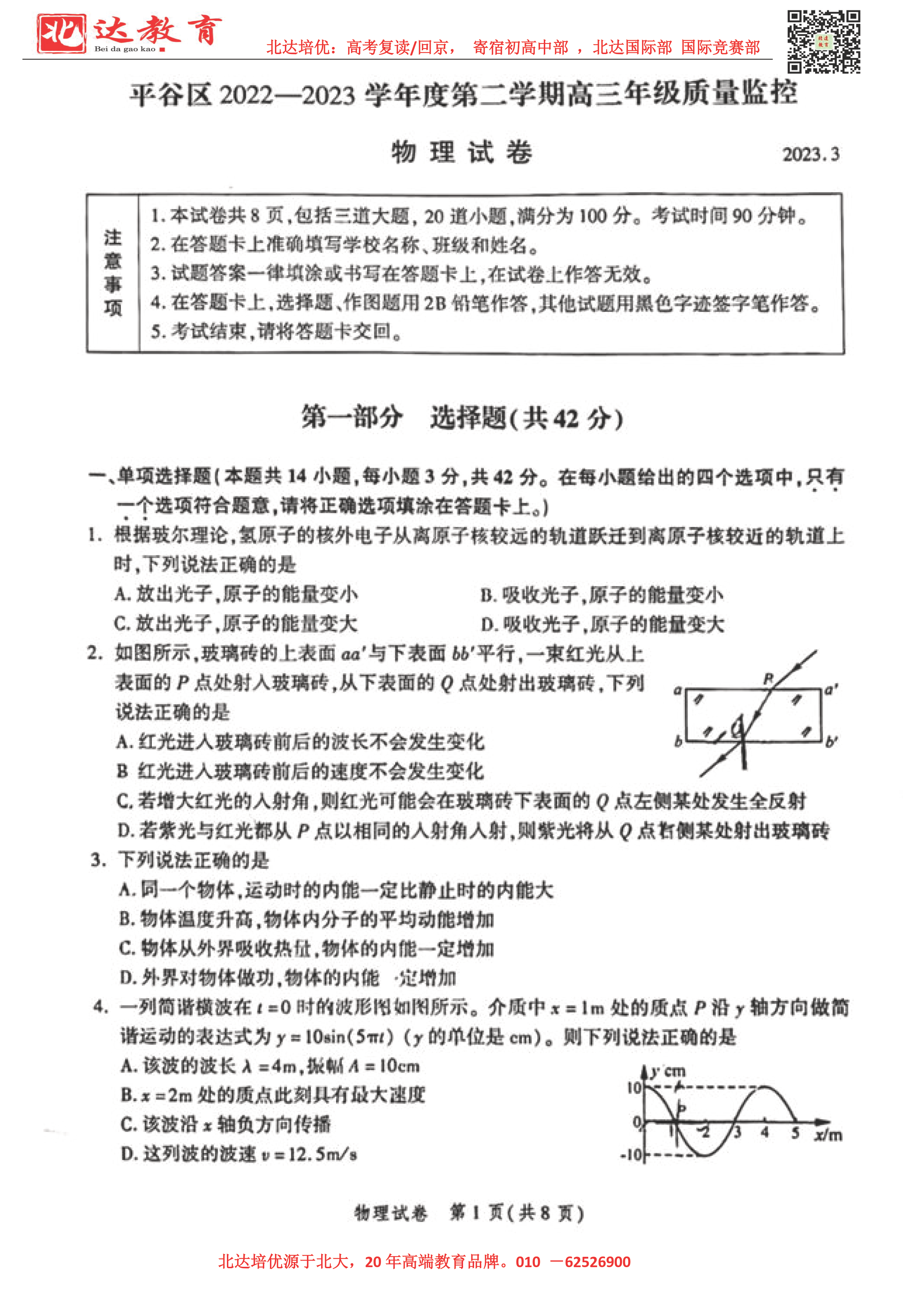2023北京各区高三零模已于3月初进行,admw360高考复读学校整理了2023北京平谷区高三零模物理试题及答案,同学们可以在线下载学习!