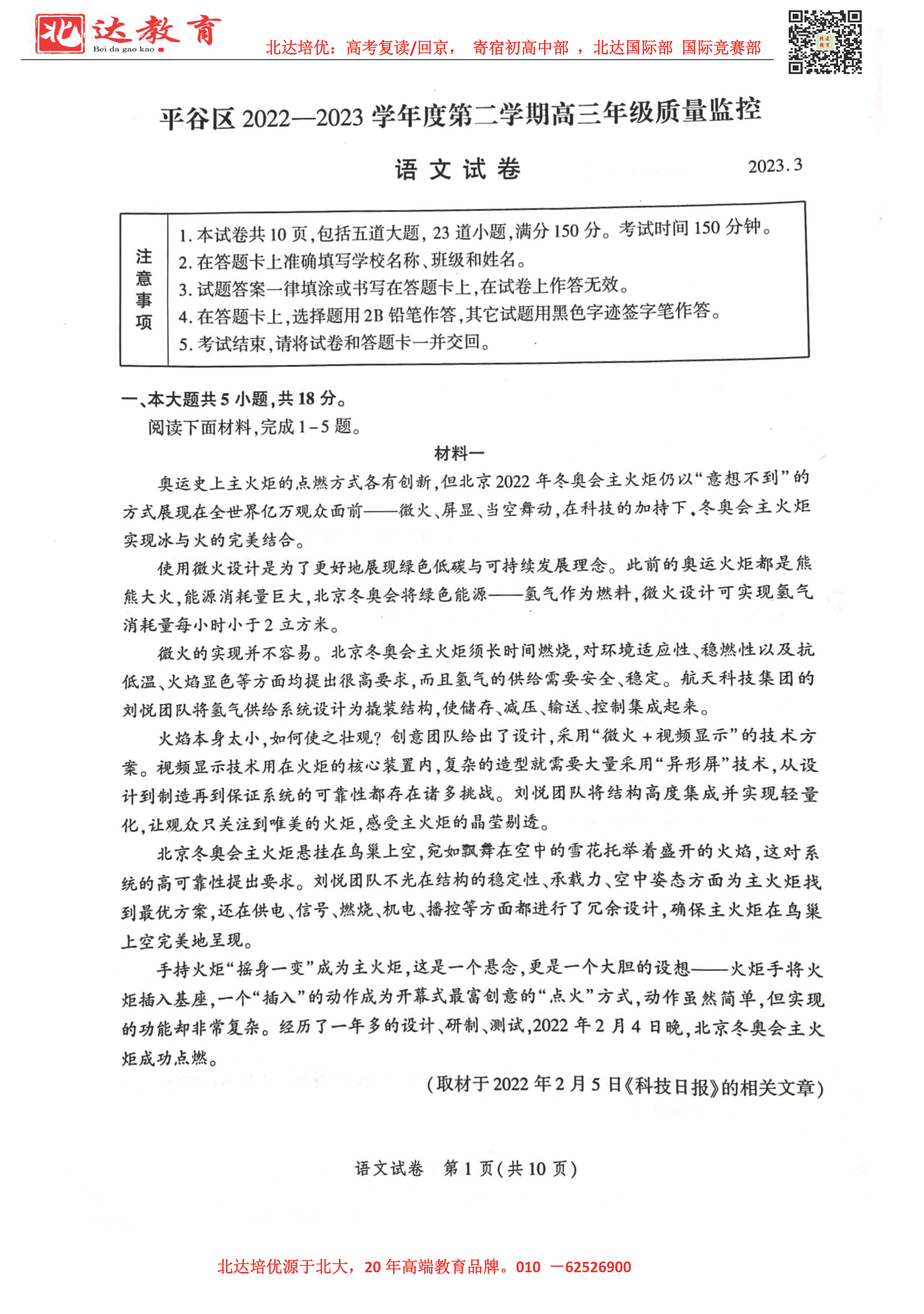 2023北京各区高三零模已于3月初进行,admw360高考复读学校整理了2023北京平谷区高三零模语文试题及答案,同学们可以在线下载学习!