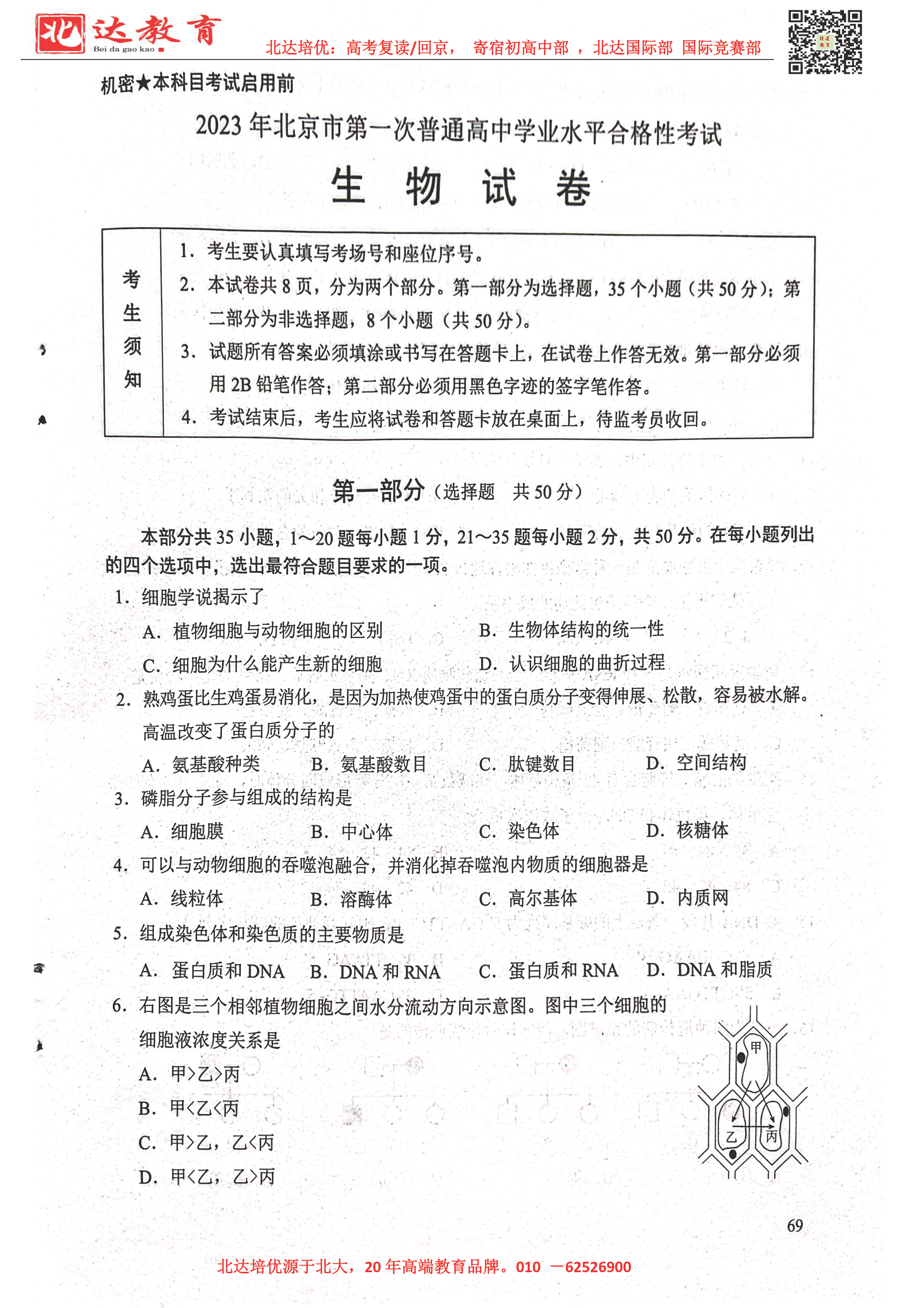 2023年北京第一次普通高中学业水平合格性考试目前考试已结束,为大家整理了2023年北京市第一次普通高中学业水平合格性考试生物试题及答案,需要的同学可以下载练习。
