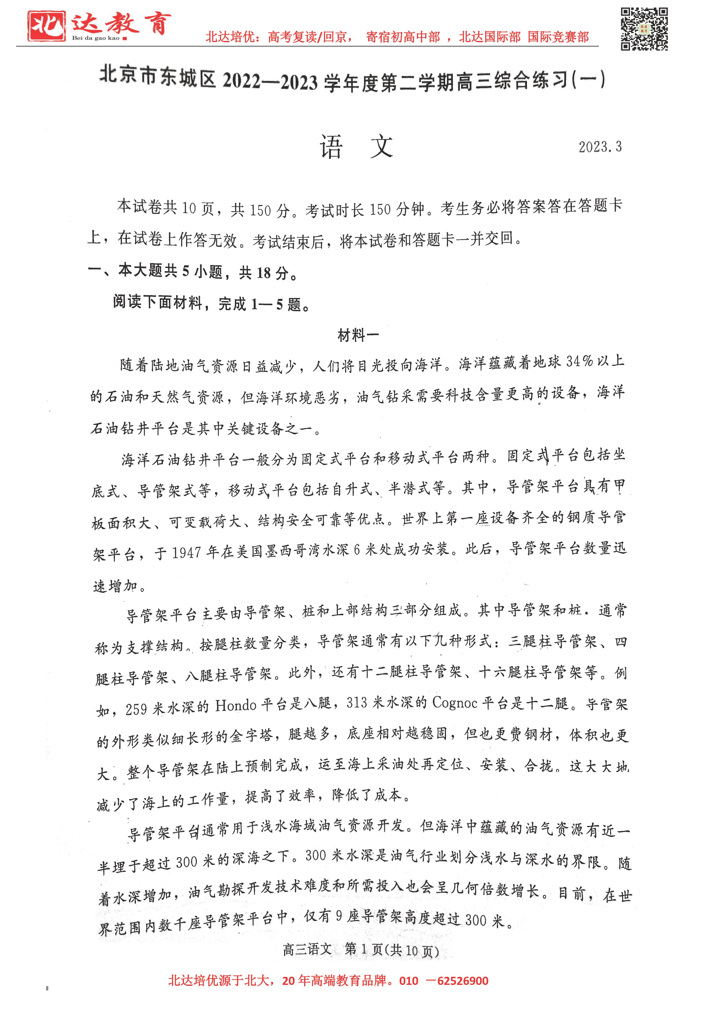 2023年北京东城区高三一模考试于3月27日-30日进行,为了方便同学们查找相关试题,admw360高考复读学校整理了2023年北京东城区高三一模语文试题及答案,附高清电子版,欢迎为大家下载分享~