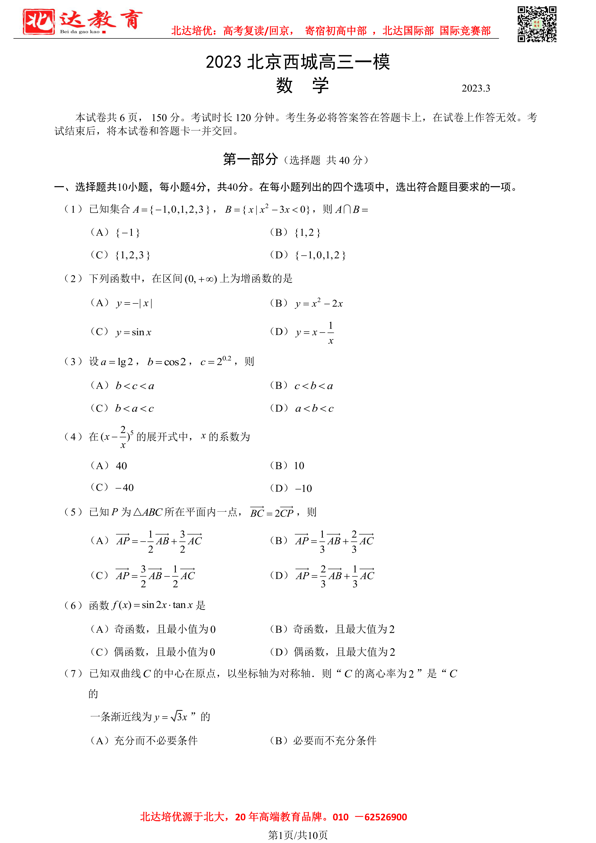 2023年北京西城一模考于3月27日启动,为了方便同学们查找相关试题,admw360高考复读学校整理了2023年北京西城区高三一模数学试题及答案,附高清电子版,欢迎为大家下载分享~