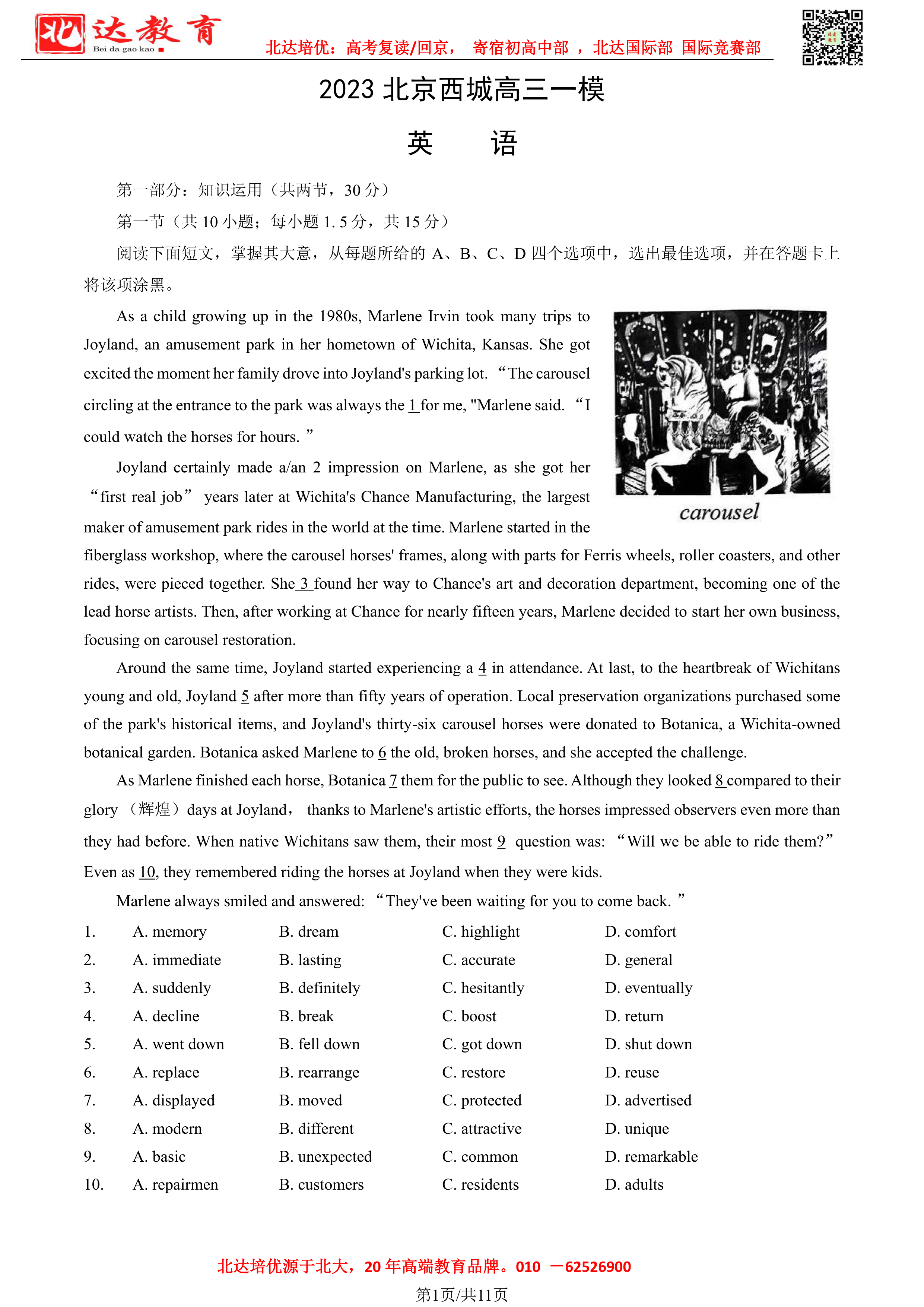2023年北京西城一模考于3月27日启动,为了方便同学们查找相关试题,admw360高考复读学校整理了2023年北京西城区高三一模英语试题及答案,附高清电子版,欢迎为大家下载分享~