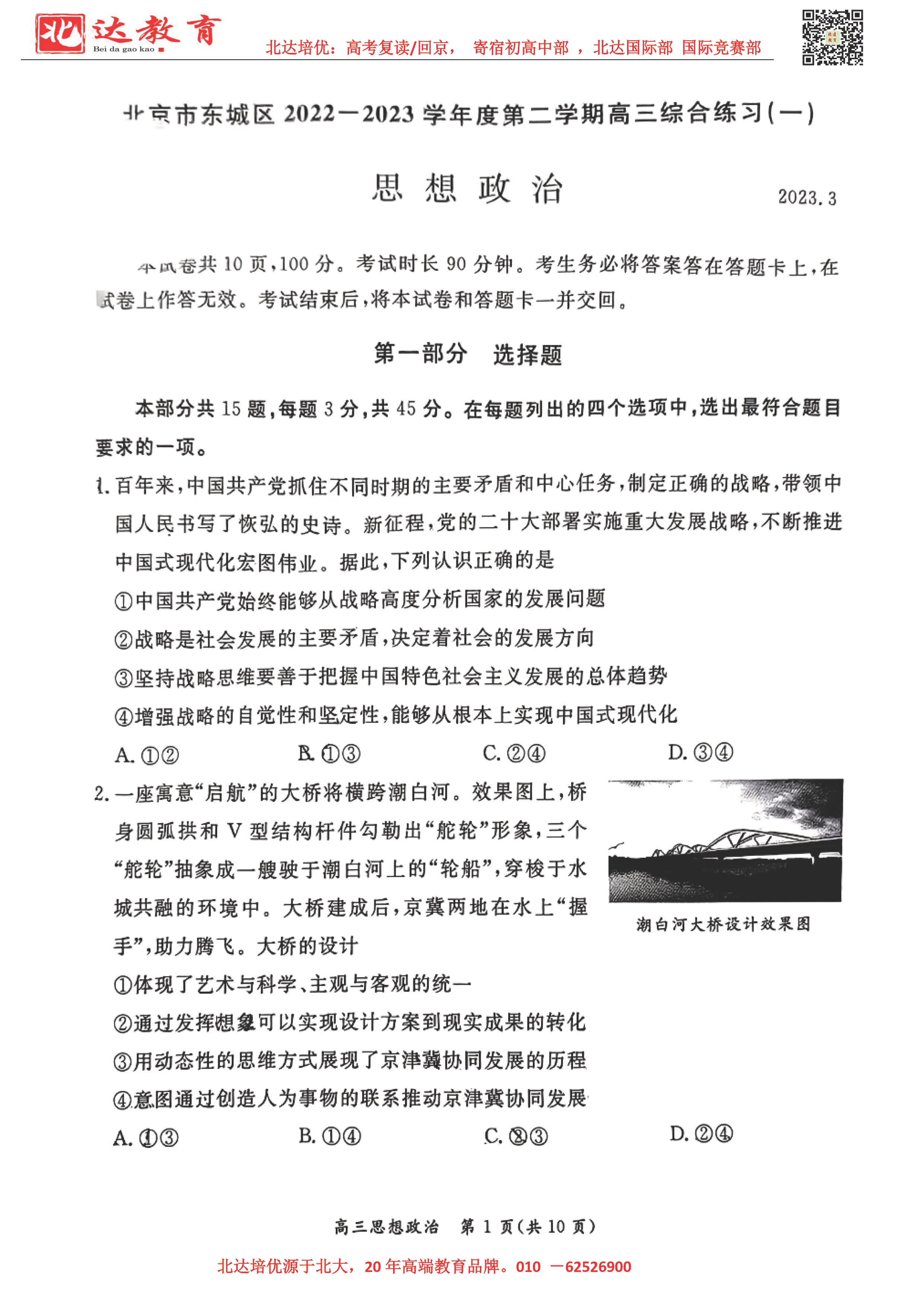 2023年北京东城区高三一模考试于3月27日-30日进行,为了方便同学们查找相关试题,admw360高考复读学校整理了2023年北京东城区高三一模政治试题及答案,附高清电子版,欢迎为大家下载分享~
