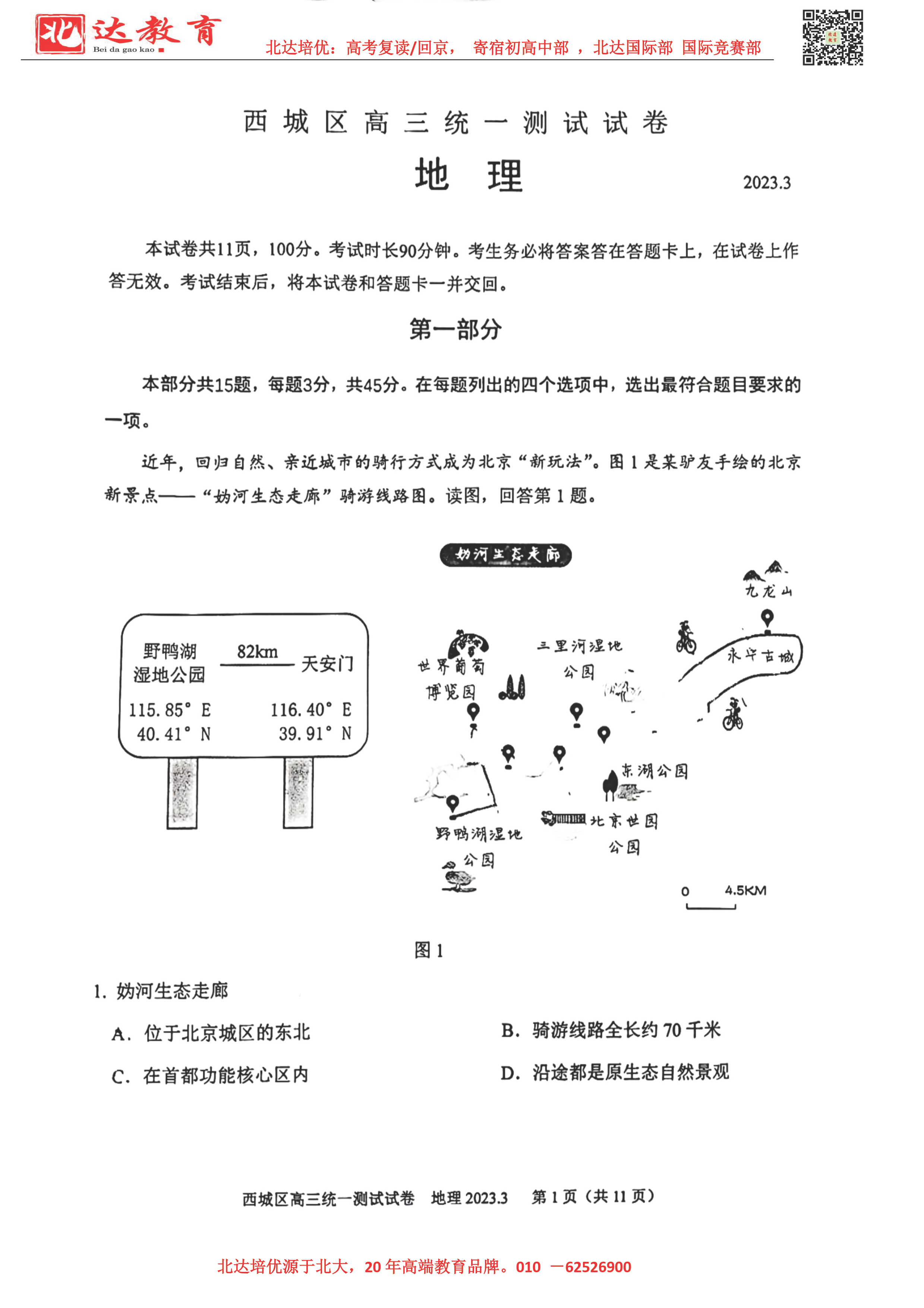 2023年北京西城一模考于3月27日启动,为了方便同学们查找相关试题,admw360高考复读学校整理了2023年北京西城区高三一模地理试题及答案,附高清电子版,欢迎为大家下载分享~