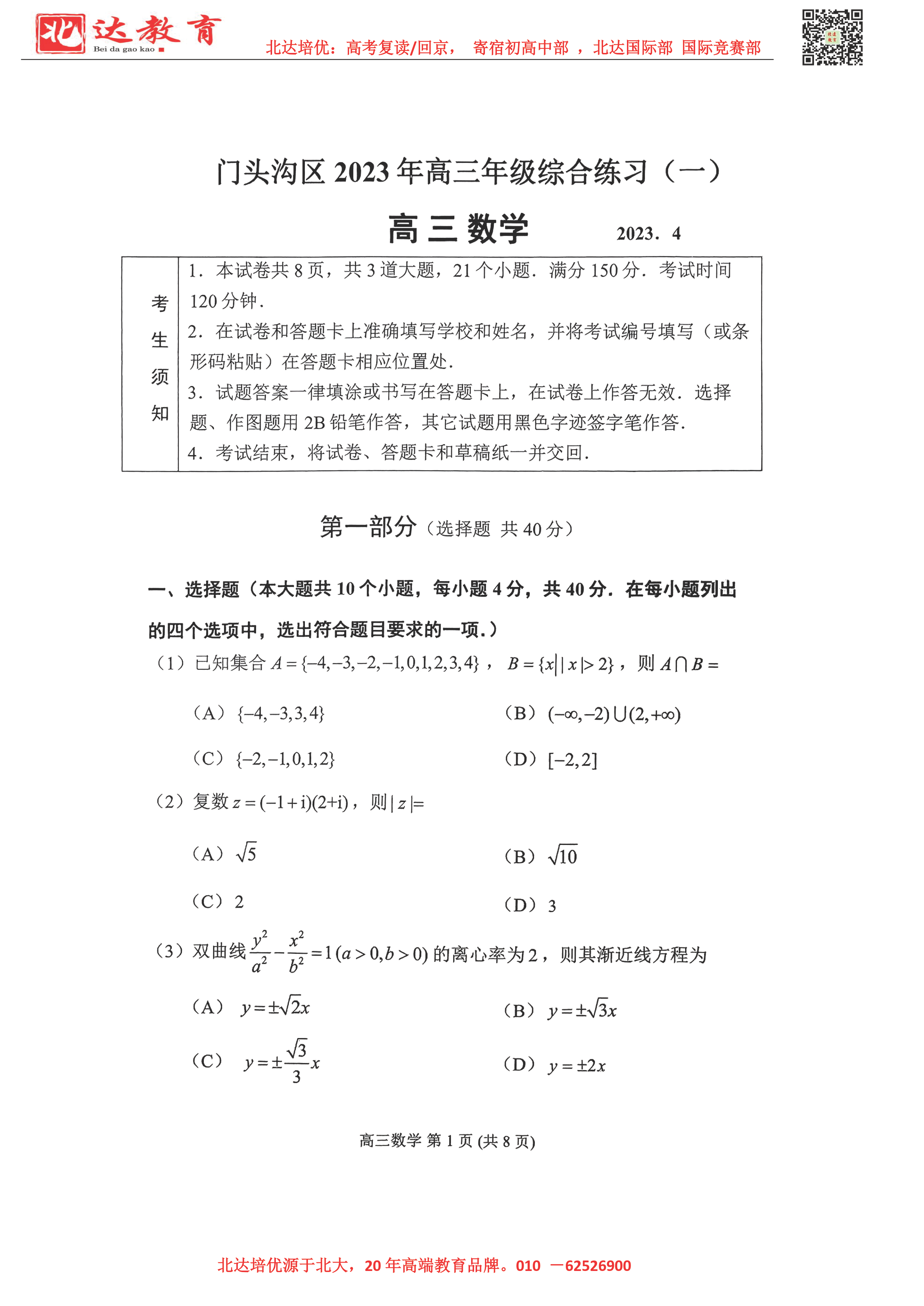 2023年北京门头沟高三一模考于4月初启动,为了方便同学们查找相关试题,admw360高考复读学校整理了2023年北京门头沟区高三一模数学试题及答案,附高清电子版,欢迎为大家下载分享~ admw360…