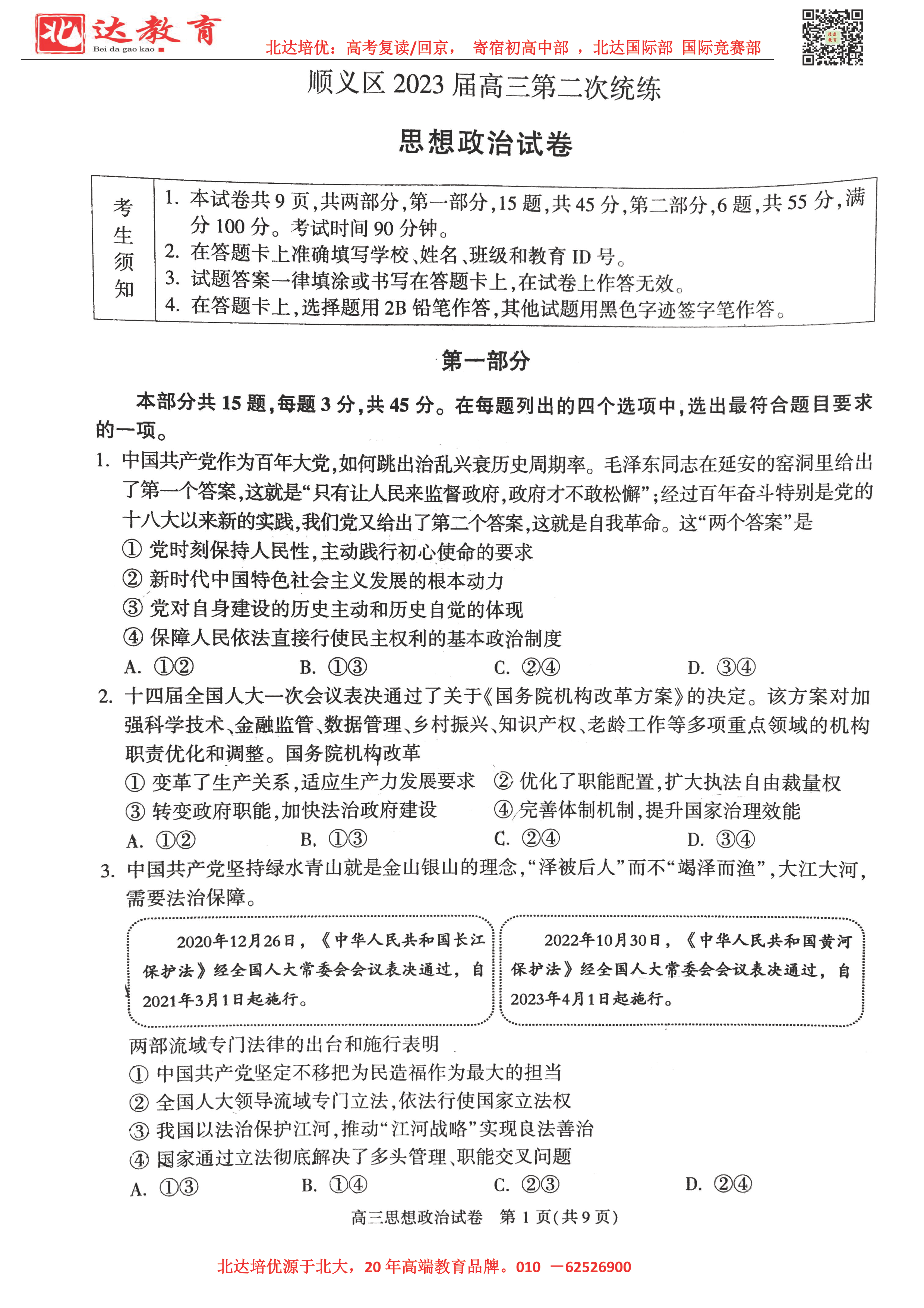 2023年北京顺义区高三一模考于3月底启动,为了方便同学们查找相关试题,admw360高考复读学校整理了2023年北京顺义区高三一模政治试题及答案,附高清电子版,欢迎为大家下载分享~ admw360高…