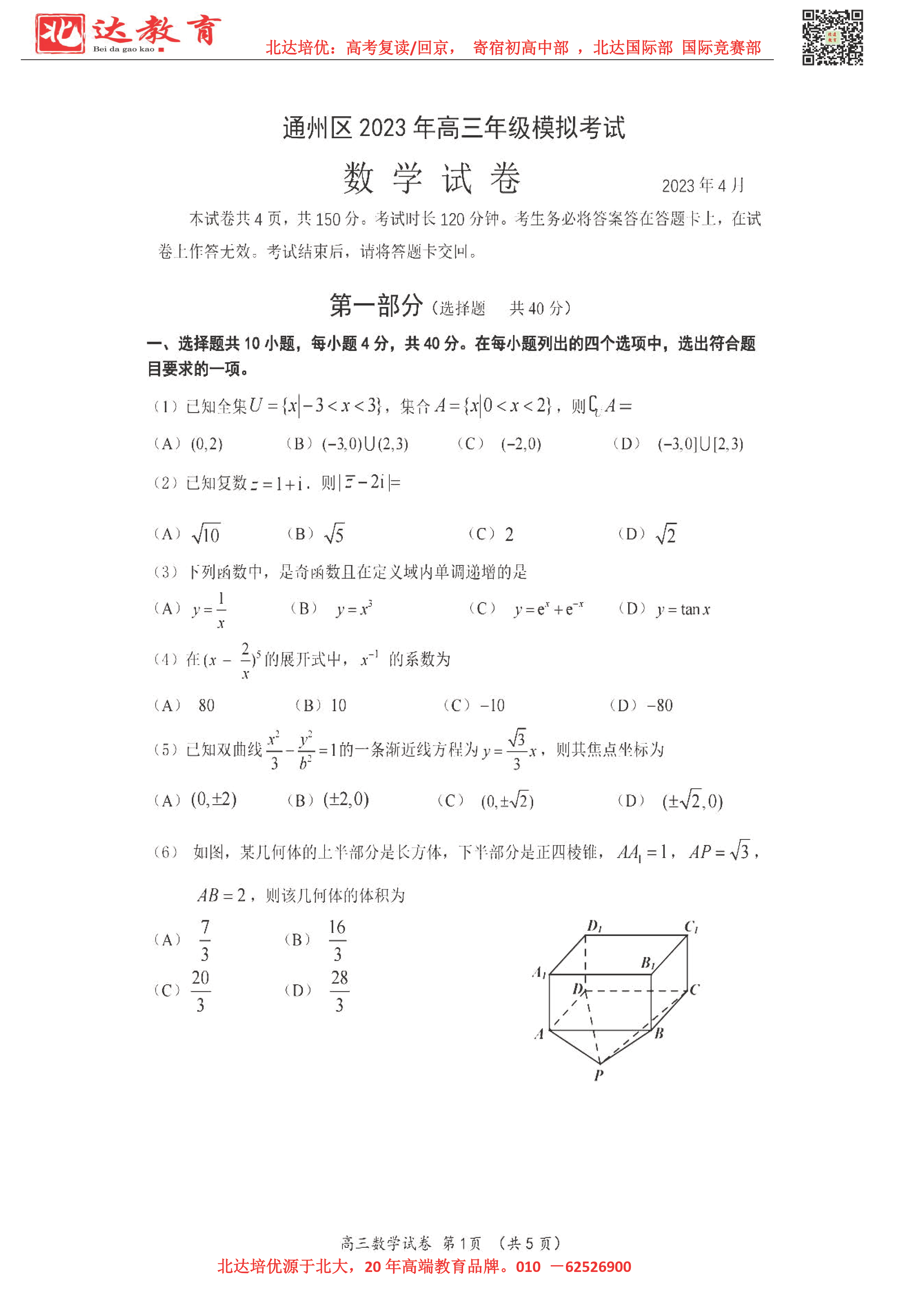 2023年北京通州高三一模于4月开考,为了方便大家查找通州高三一模试题及答案,admw360高考复读学校整理了2023年北京通州区高三一模数学试题及答案,附高清电子版,欢迎为大家下载分享~