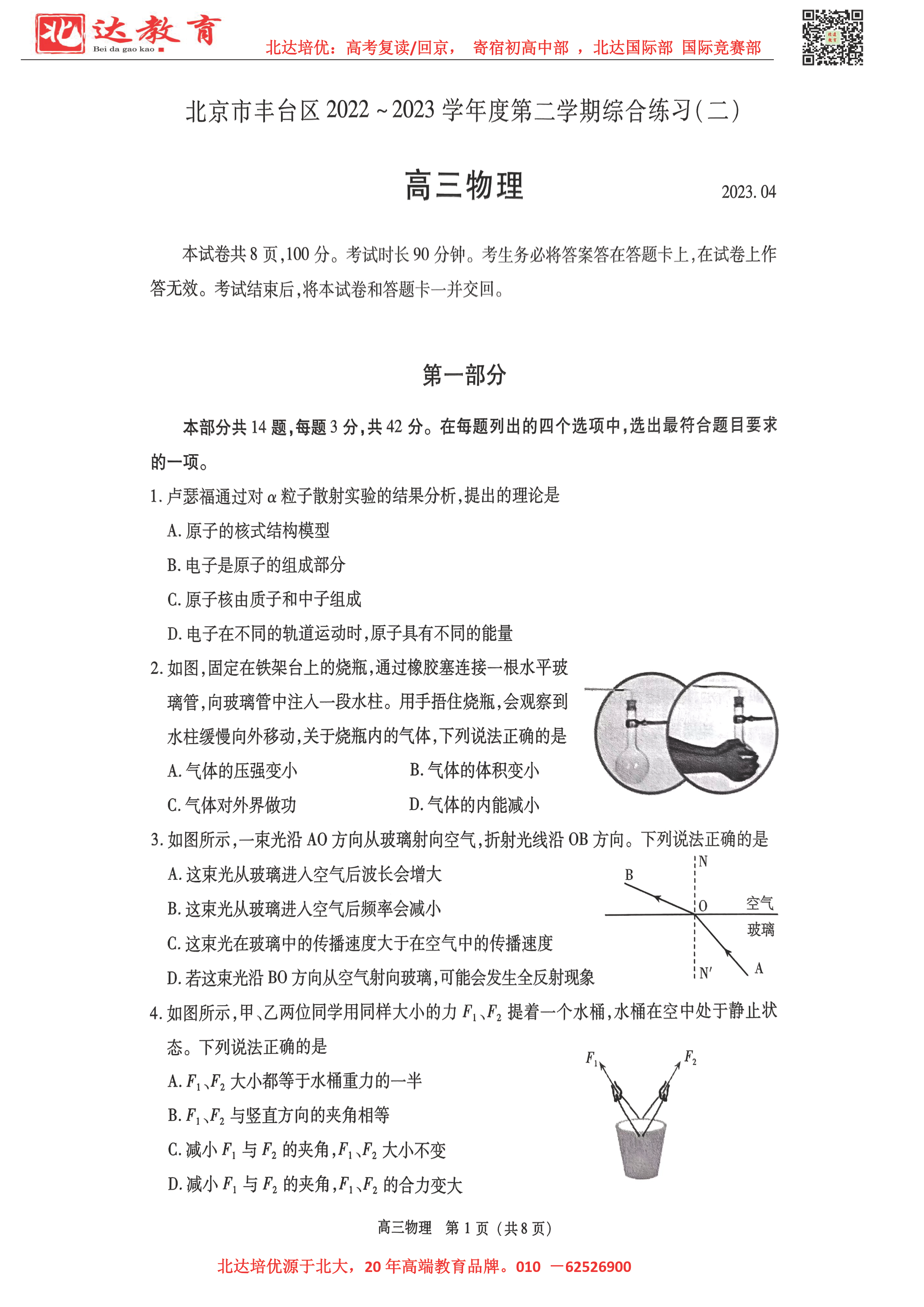 2023年北京丰台区高三二模考试预计于4月底进行。为了方便同学们查找相关试题及答案,admw360高考复读学校整理了2023年北京丰台区高三二模物理试题及答案,附高清电子版,欢迎为大家下载分享~