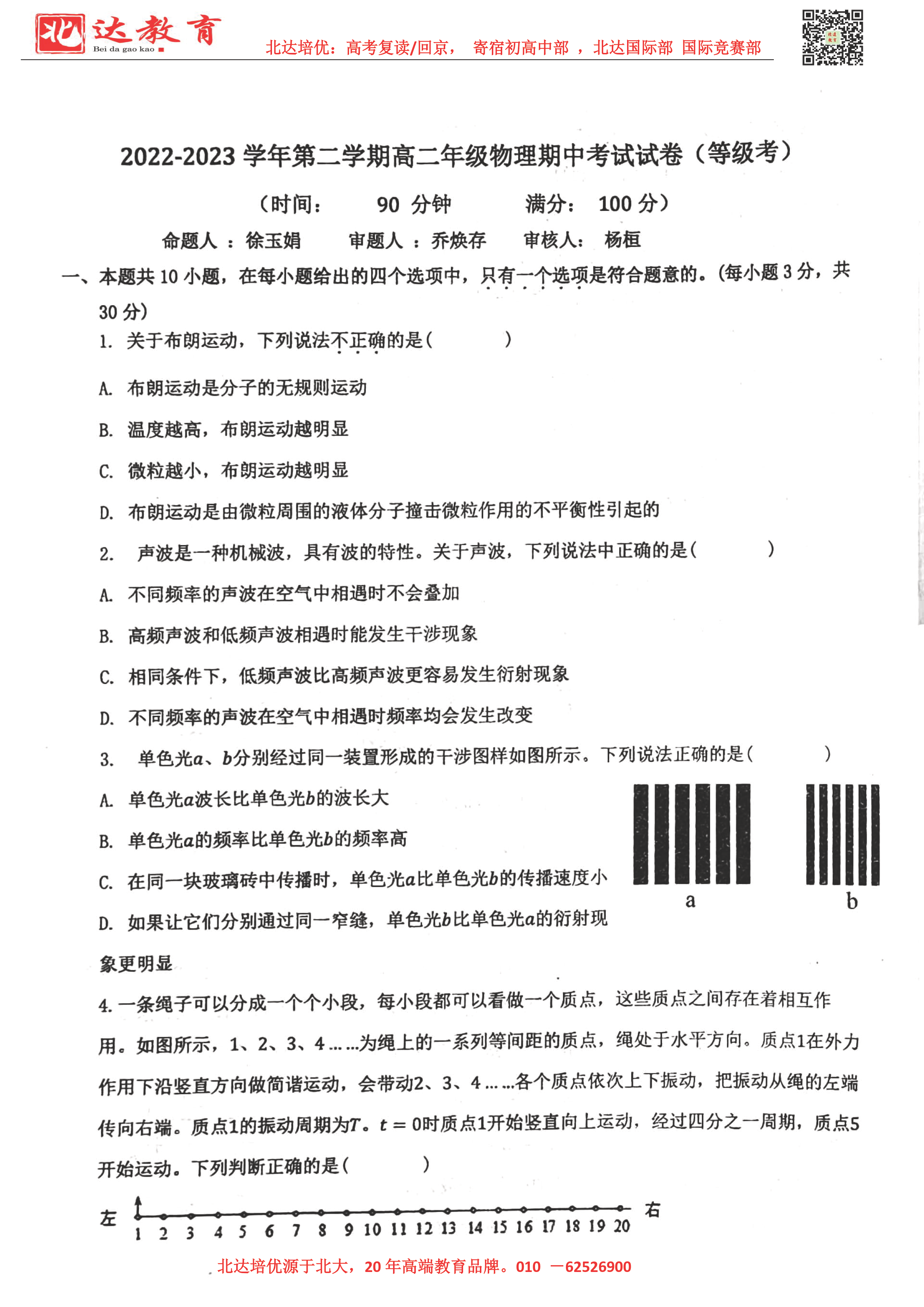 2022-2023学年北京各区高二年级下学期期中考试已开始,admw360高考复读学校整理了2022-2023学年北京理工大附中高二(下)期中物理试题,供同学们在线下载!