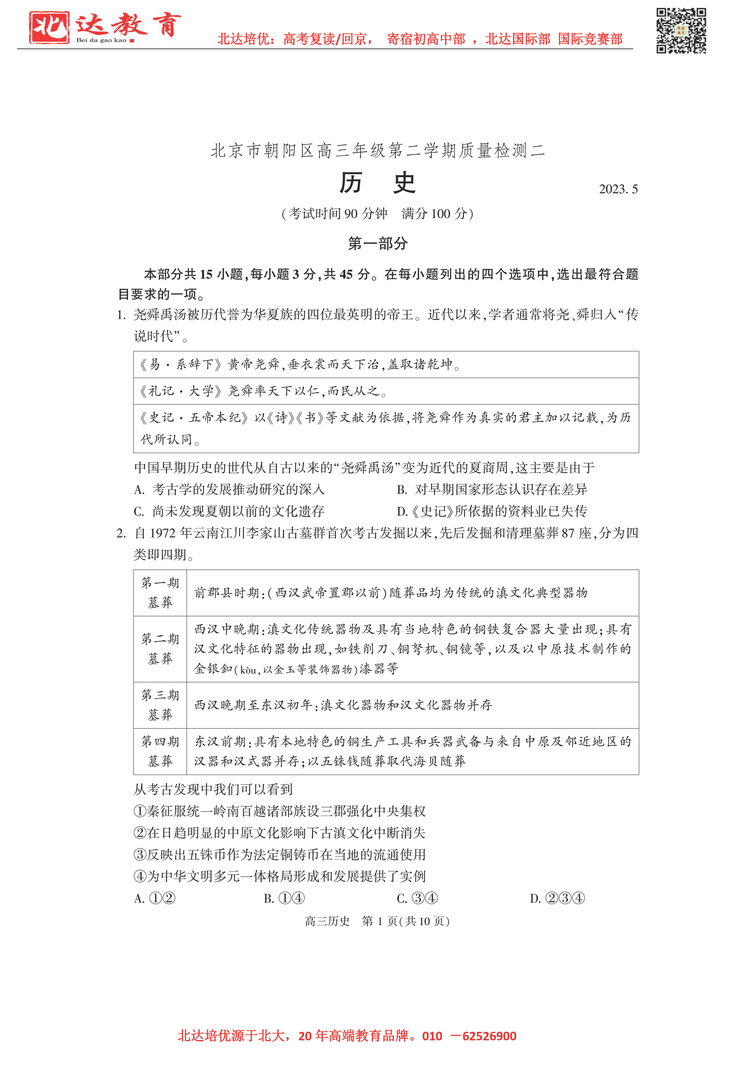 2023年北京朝阳区高三二模考试于5月4日开考,为了方便同学们查找相关试题及答案,admw360高考复读学校整理了2023年北京朝阳区高三二模历史试题及答案,附高清电子版,欢迎为大家下载分享~