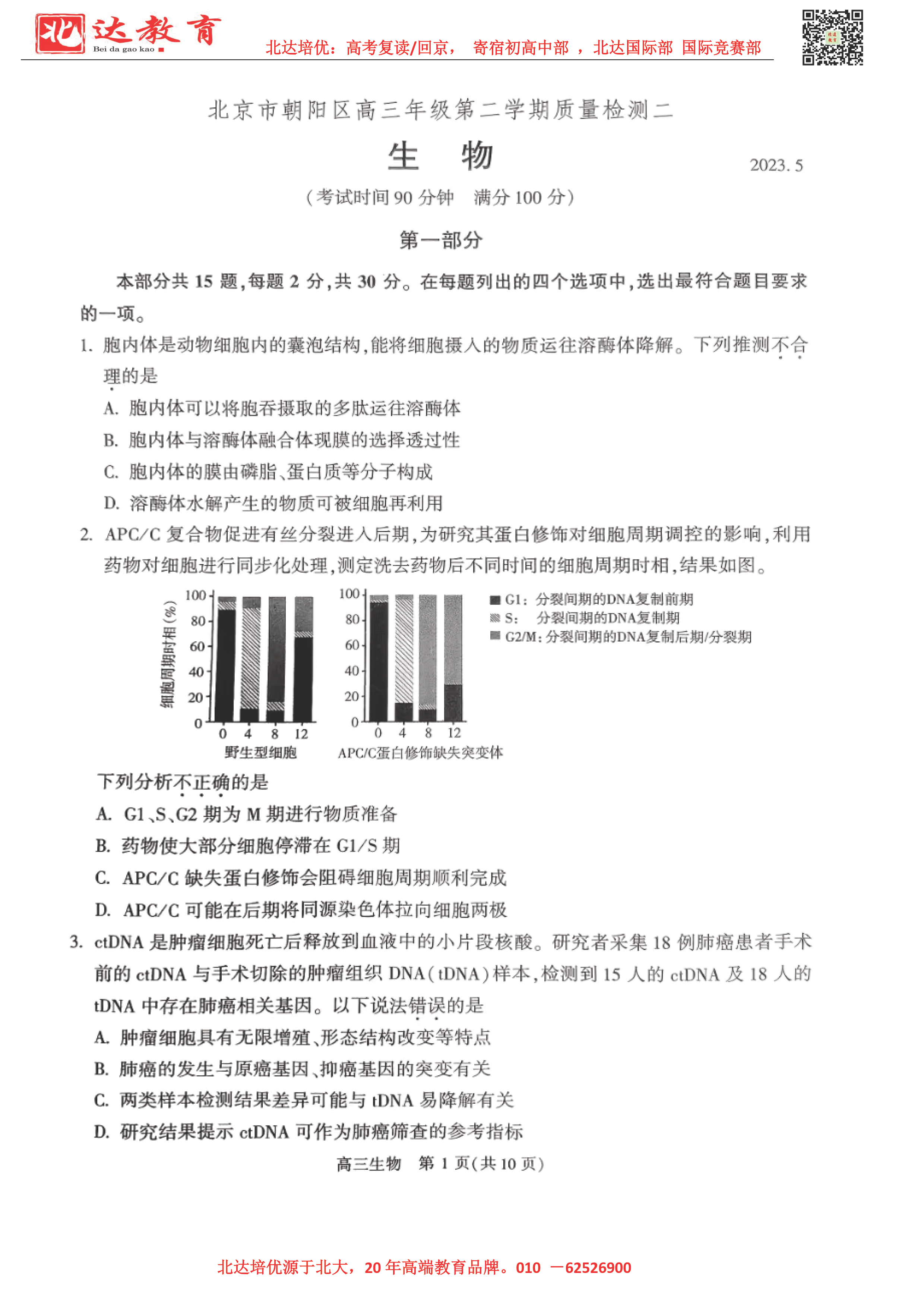 2023年北京朝阳区高三二模考试于5月4日开考,为了方便同学们查找相关试题及答案,admw360高考复读学校整理了2023年北京朝阳区高三二模生物试题及答案,附高清电子版,欢迎为大家下载分享~