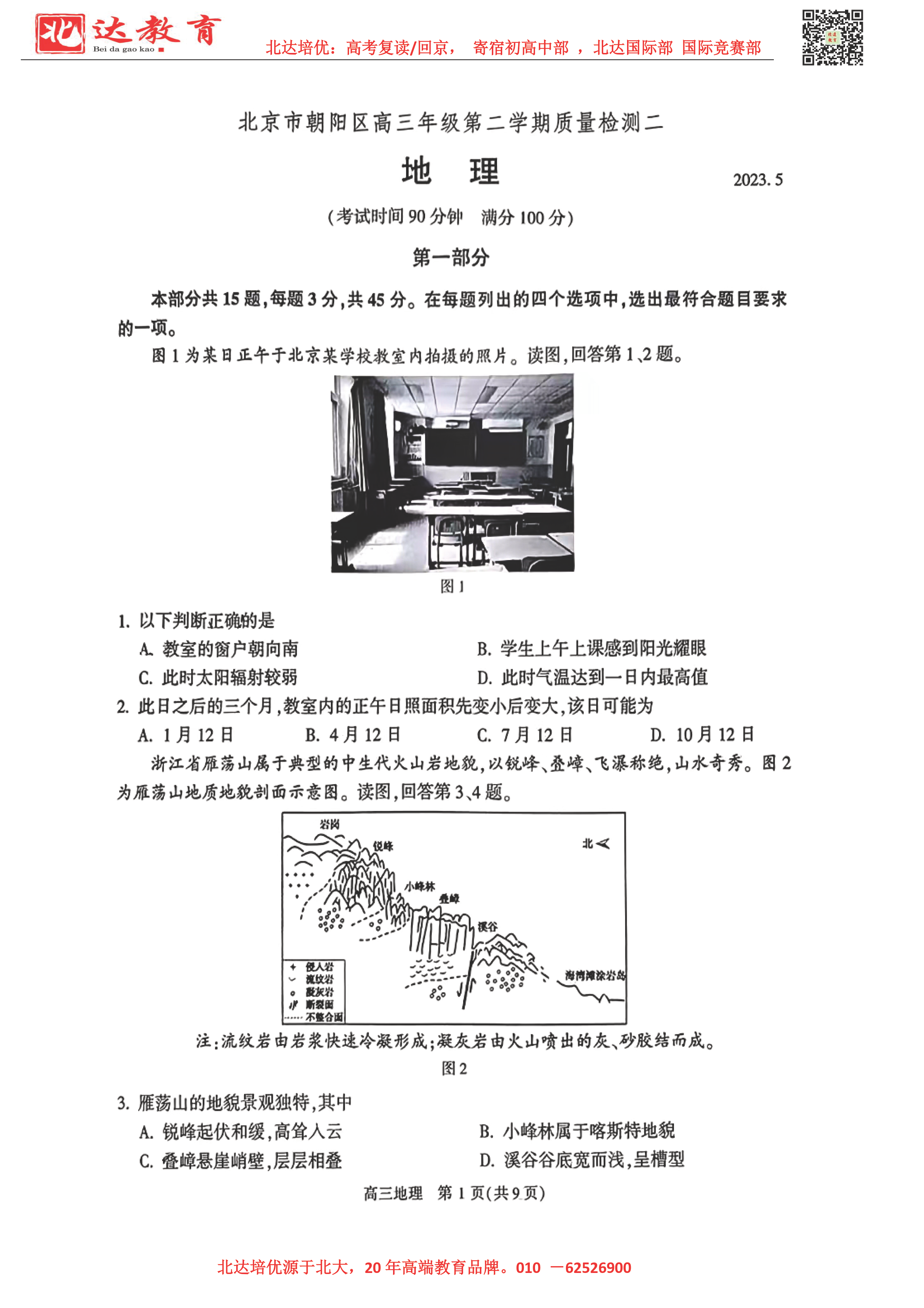 2023年北京朝阳区高三二模考试预于5月4日进行,为了方便同学们查找相关试题及答案,admw360高考复读学校整理了2023年北京朝阳区高三二模地理试题及答案,附高清电子版,欢迎为大家下载分享~