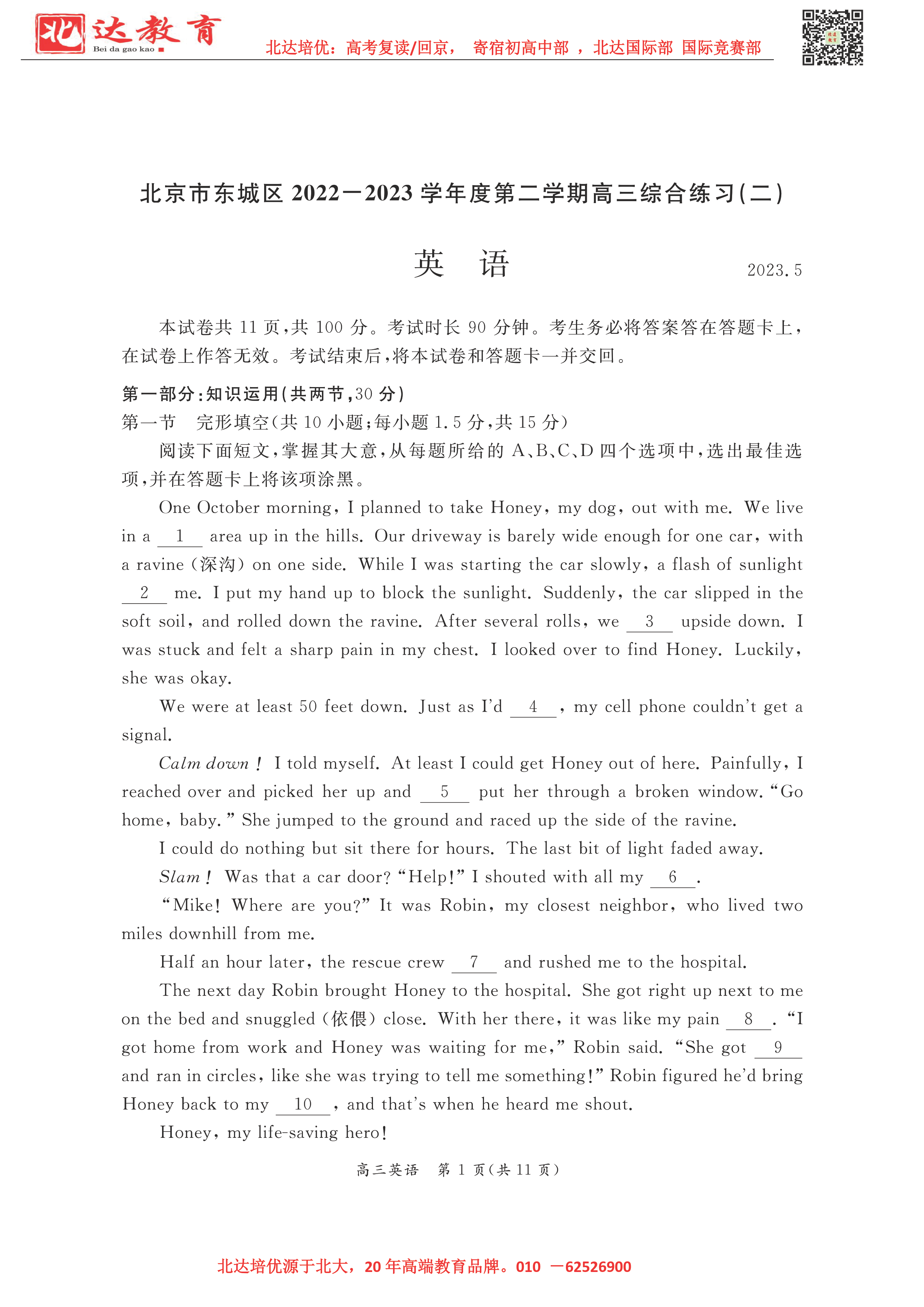 2023年北京东城区高三二模考试预于5月初进行,为了方便同学们查找相关试题及答案,admw360高考复读学校整理了2023年北京东城区高三二模英语试题及答案,附高清电子版,欢迎为大家下载分享~