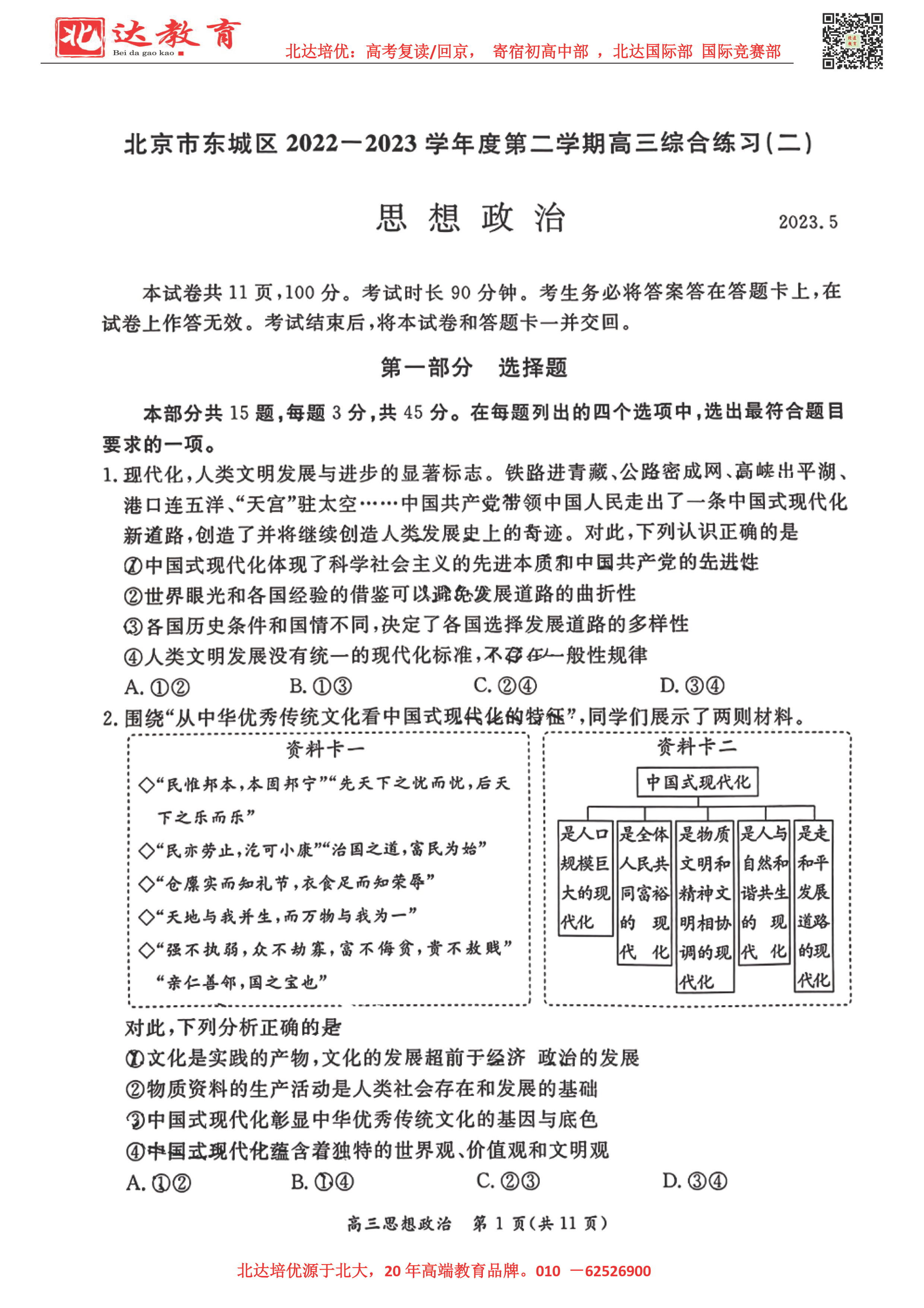 2023年北京东城区高三二模考试预于5月初进行,为了方便同学们查找相关试题及答案,admw360高考复读学校整理了2023年北京东城区高三二模政治试题及答案,附高清电子版,欢迎为大家下载分享~