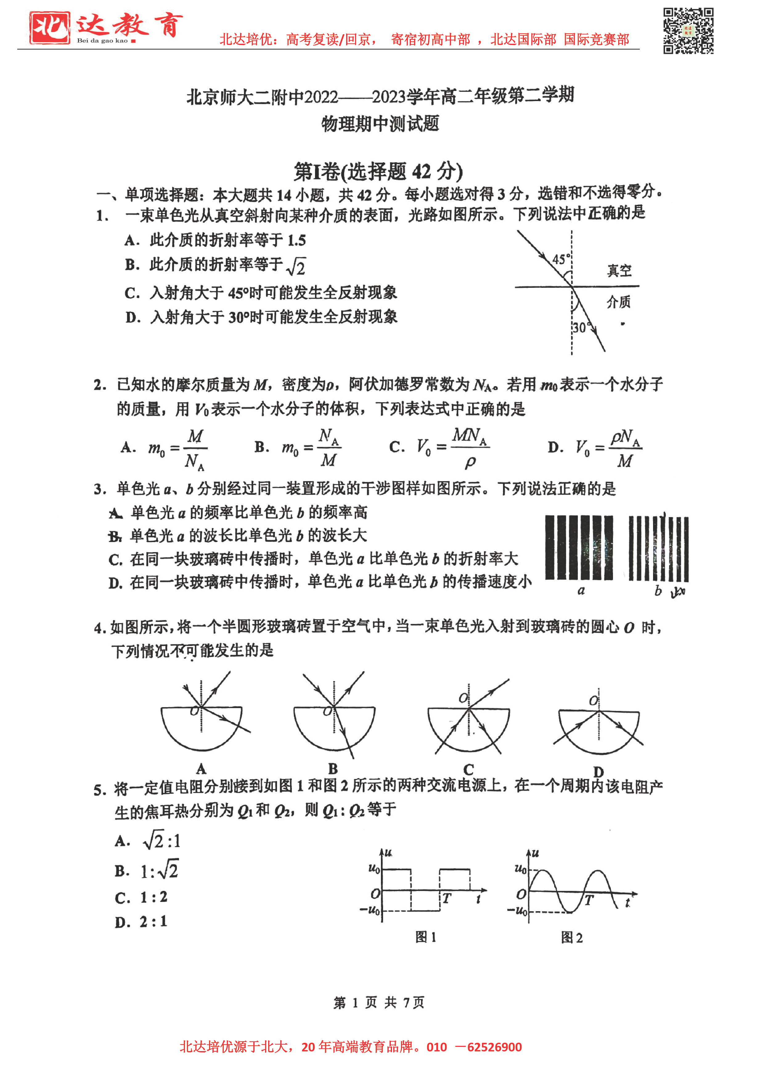 2022-2023学年北京各区高二年级下学期期中考试已开始,admw360高考复读学校整理了2022-2023学年北京北师大二附中高二(下)期中物理试题,供同学们在线下载!