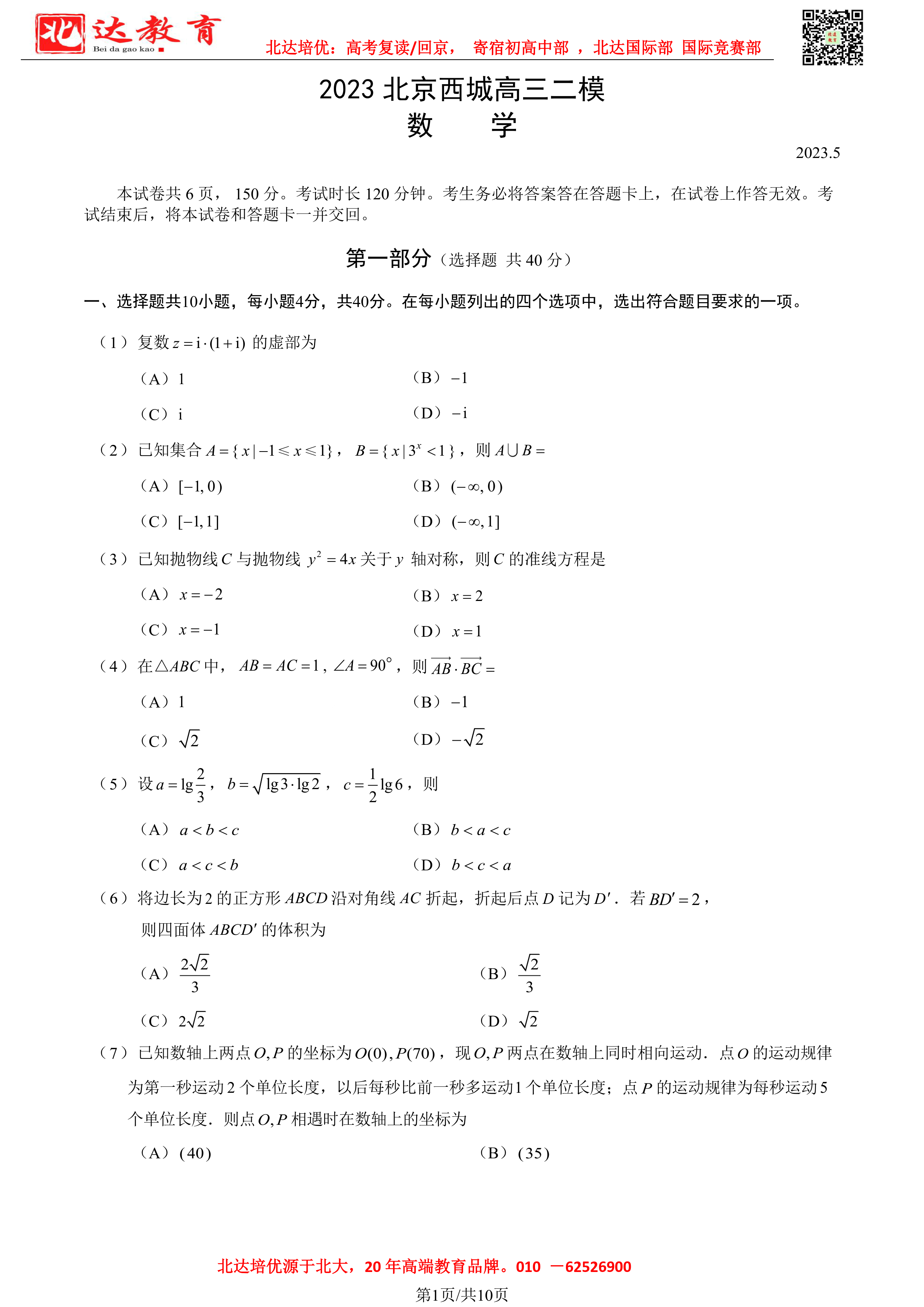 2023北京市各区高三二模试题及答案电子版,可进群免费获取