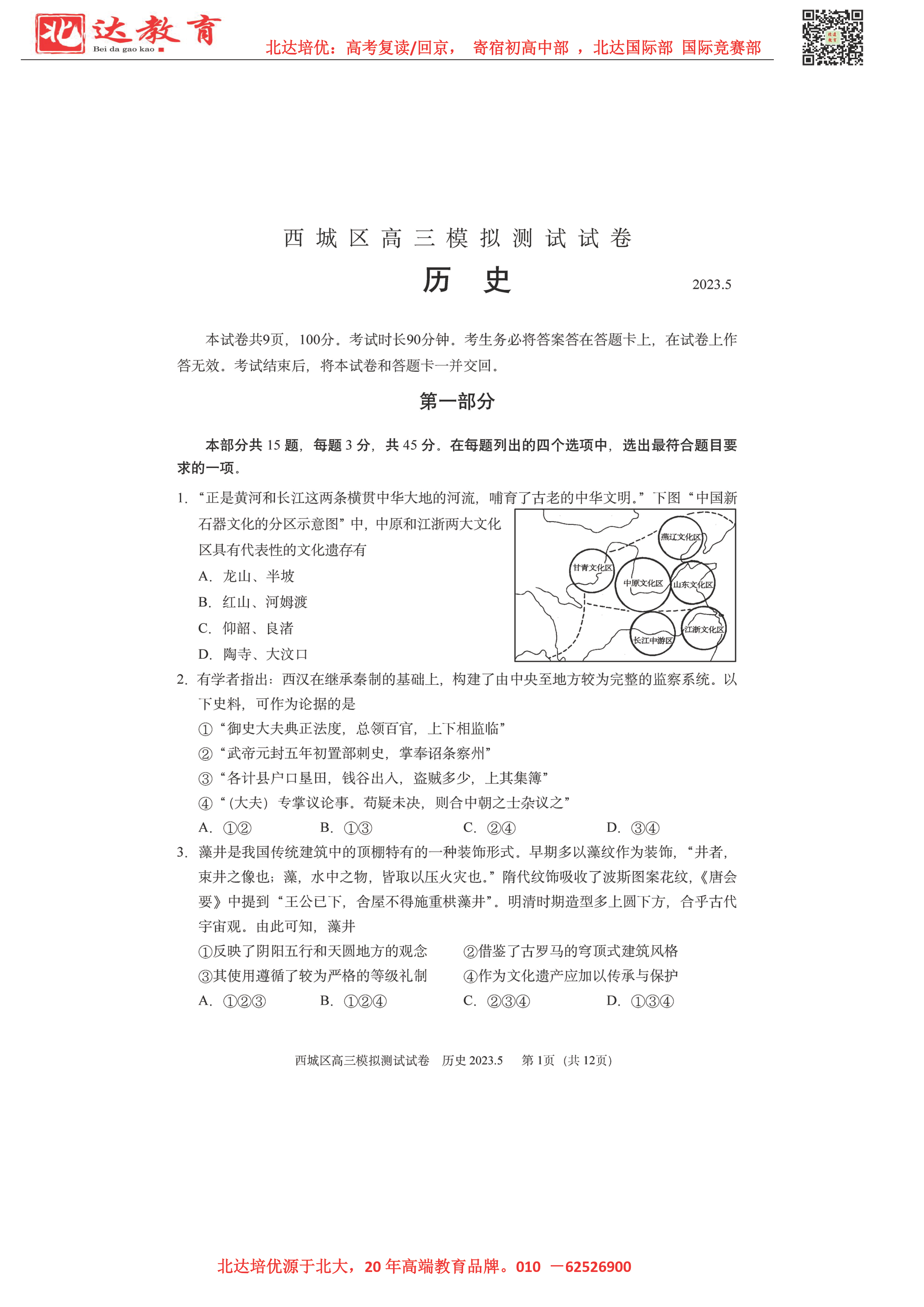 2023年北京西城区高三二模考试预于5月初进行,为了方便同学们查找相关试题及答案,admw360高考复读学校整理了2023年北京西城区高三二模历史题及答案,附高清电子版,欢迎为大家下载分享~