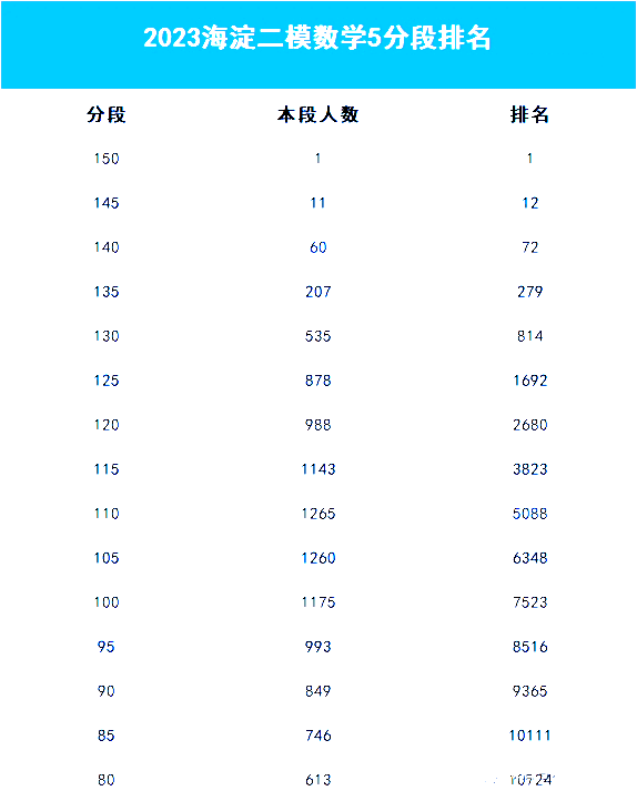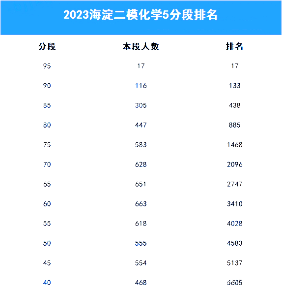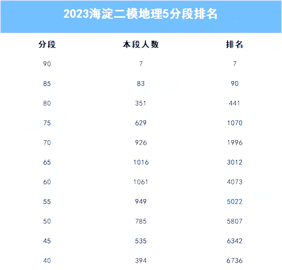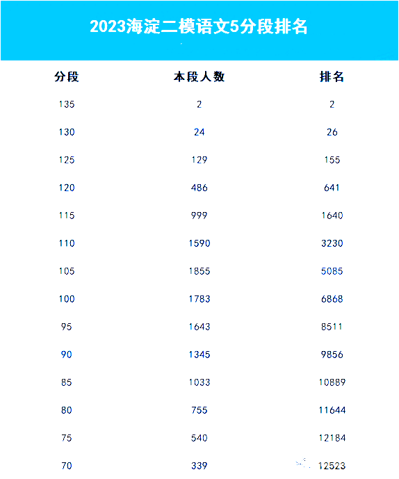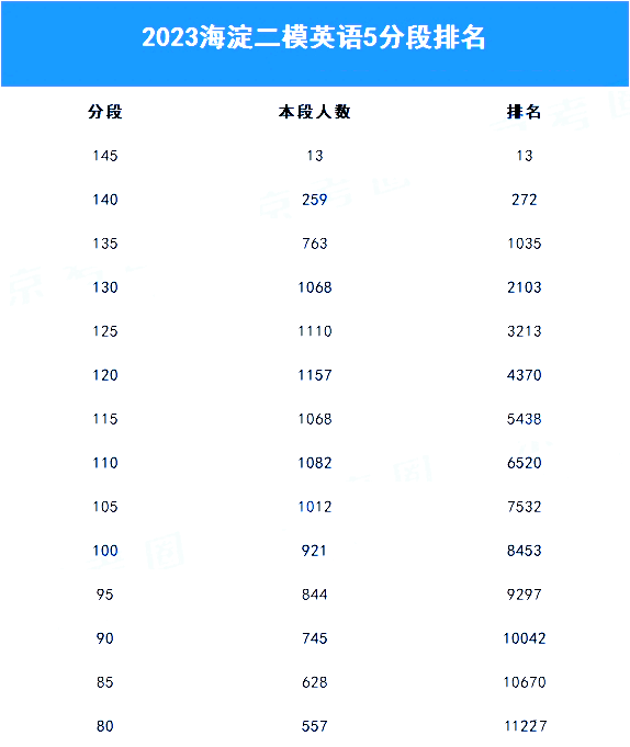二模考试结束后,考生和家长最关注的就是成绩和排名。除海淀二模分数线、区排名及对应市排名外,本文收集到各科五分段排名表,快来看看!