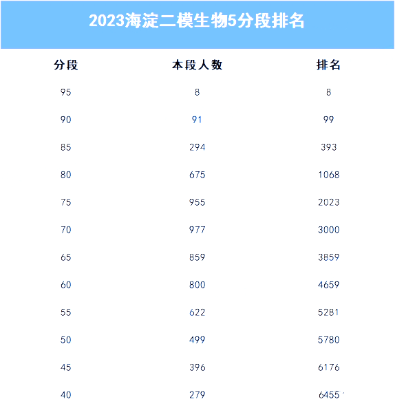 海淀高三二模生物五分段排名