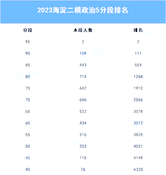 海淀高三二模政治五分段排名