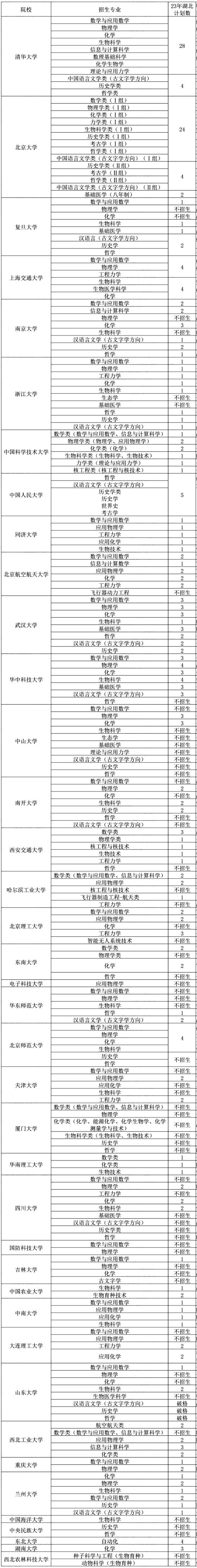 更多省市招生计划:2023年全国各省市强基计划招生专业及招生计划人数汇总