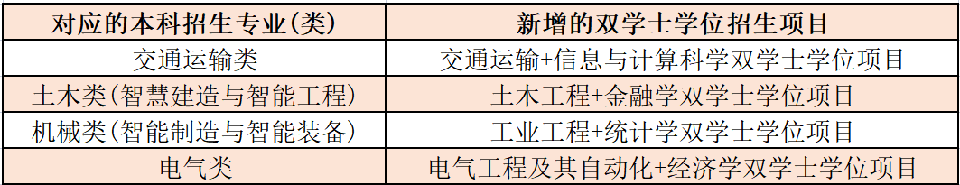 2. 新增4个双学士学位招生项目入学时将面向对应大类学生选拔,学生毕业后获得双学位。