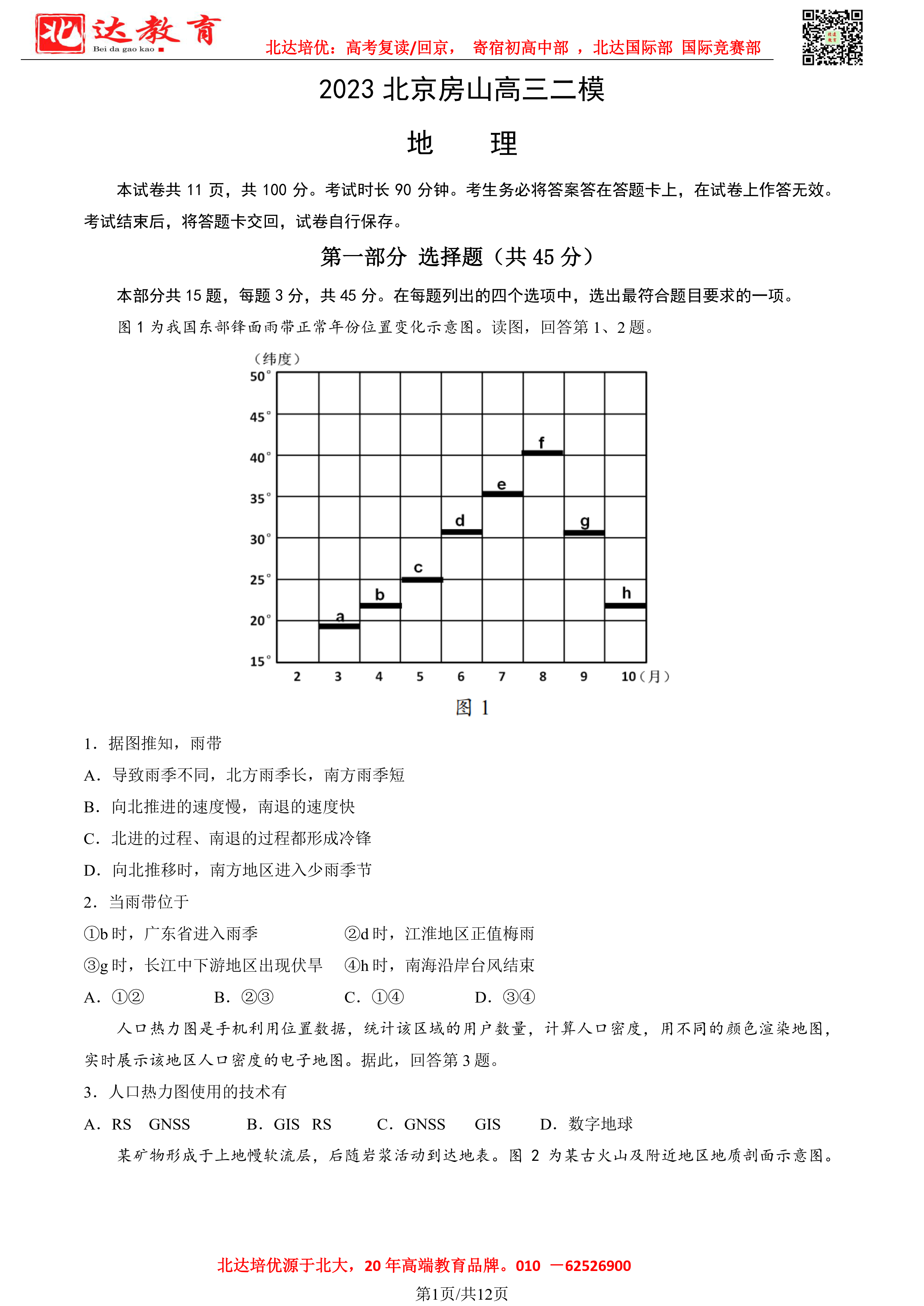 2023年北京房山区高三二模考试预于5月初进行,为了方便同学们查找相关试题及答案,admw360高考复读学校整理了2023年北京房山区高三二模地理试题及答案,附高清电子版,欢迎为大家下载分享~