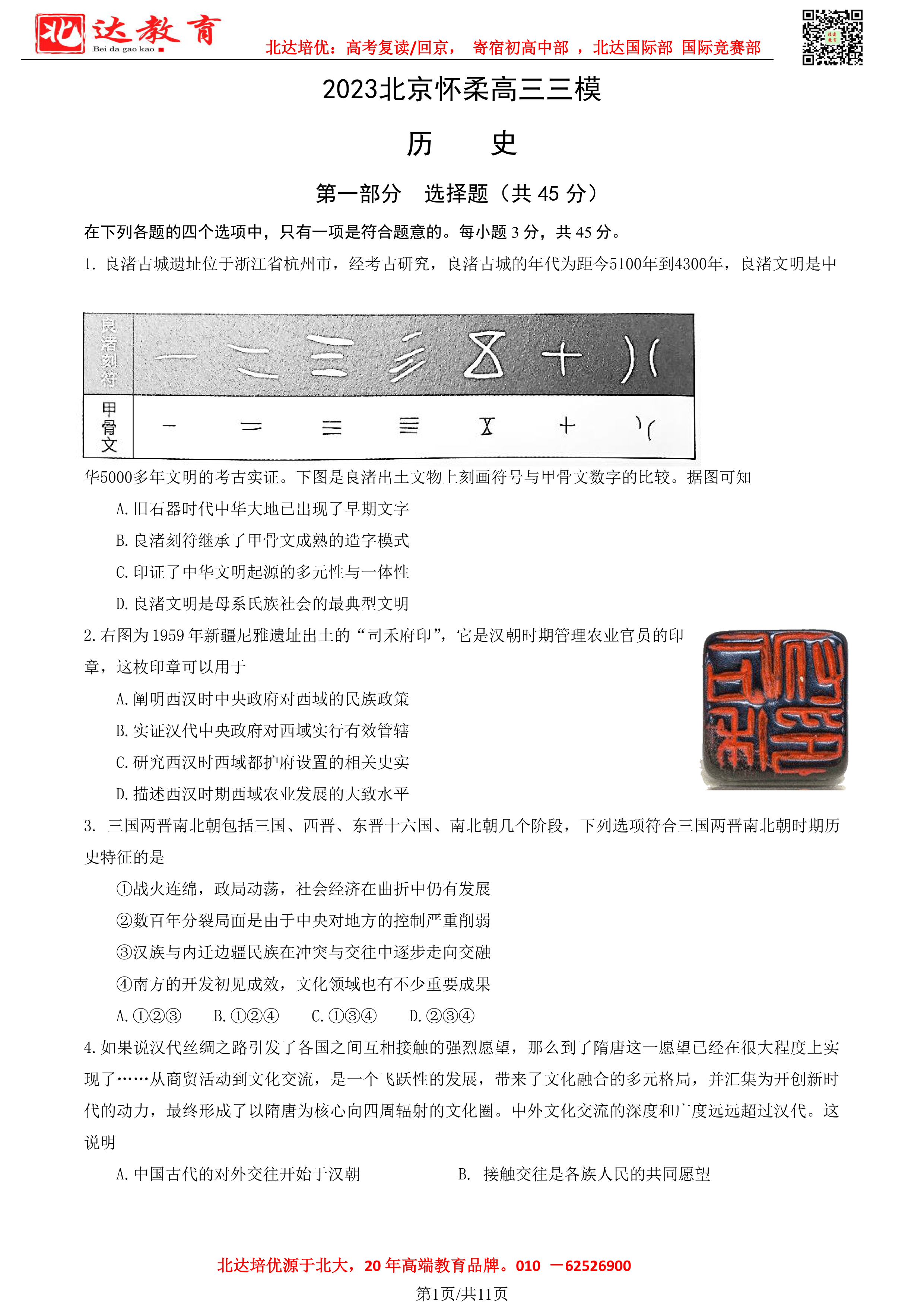 立即下载:2023年北京怀柔高三三模历史试题及答案