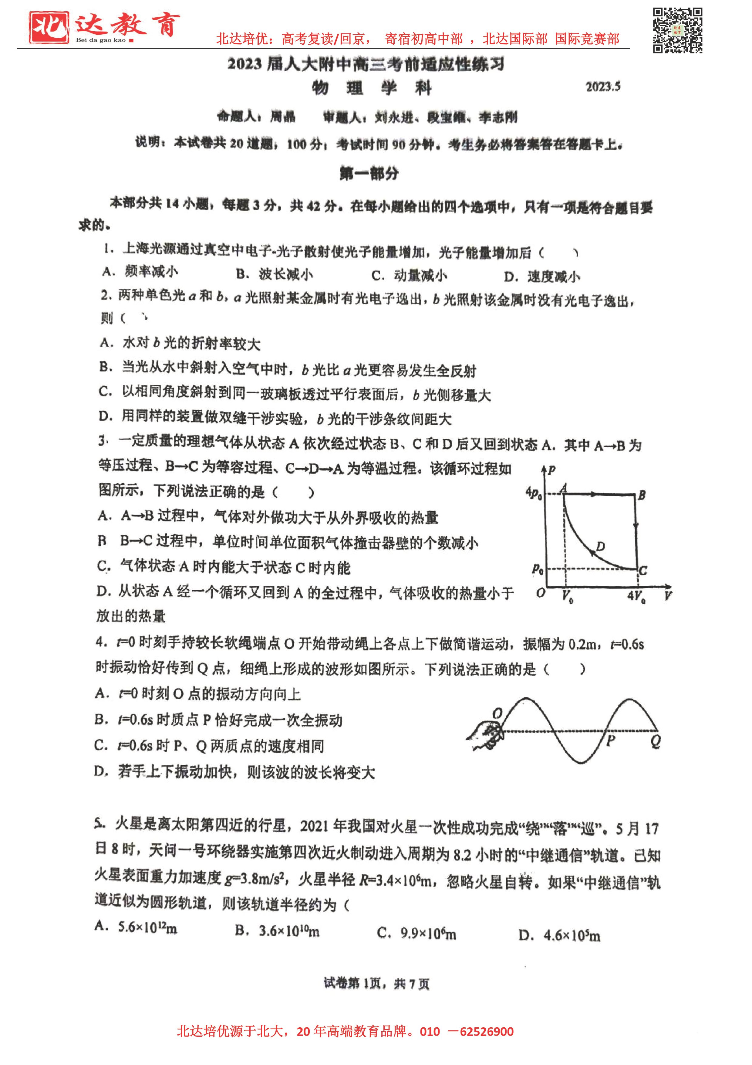 近日,北京人大附中高三年级进行了三模测试,为此,admw360高考复读学校整理了化学科目试题、答案相关内容,详情如下: