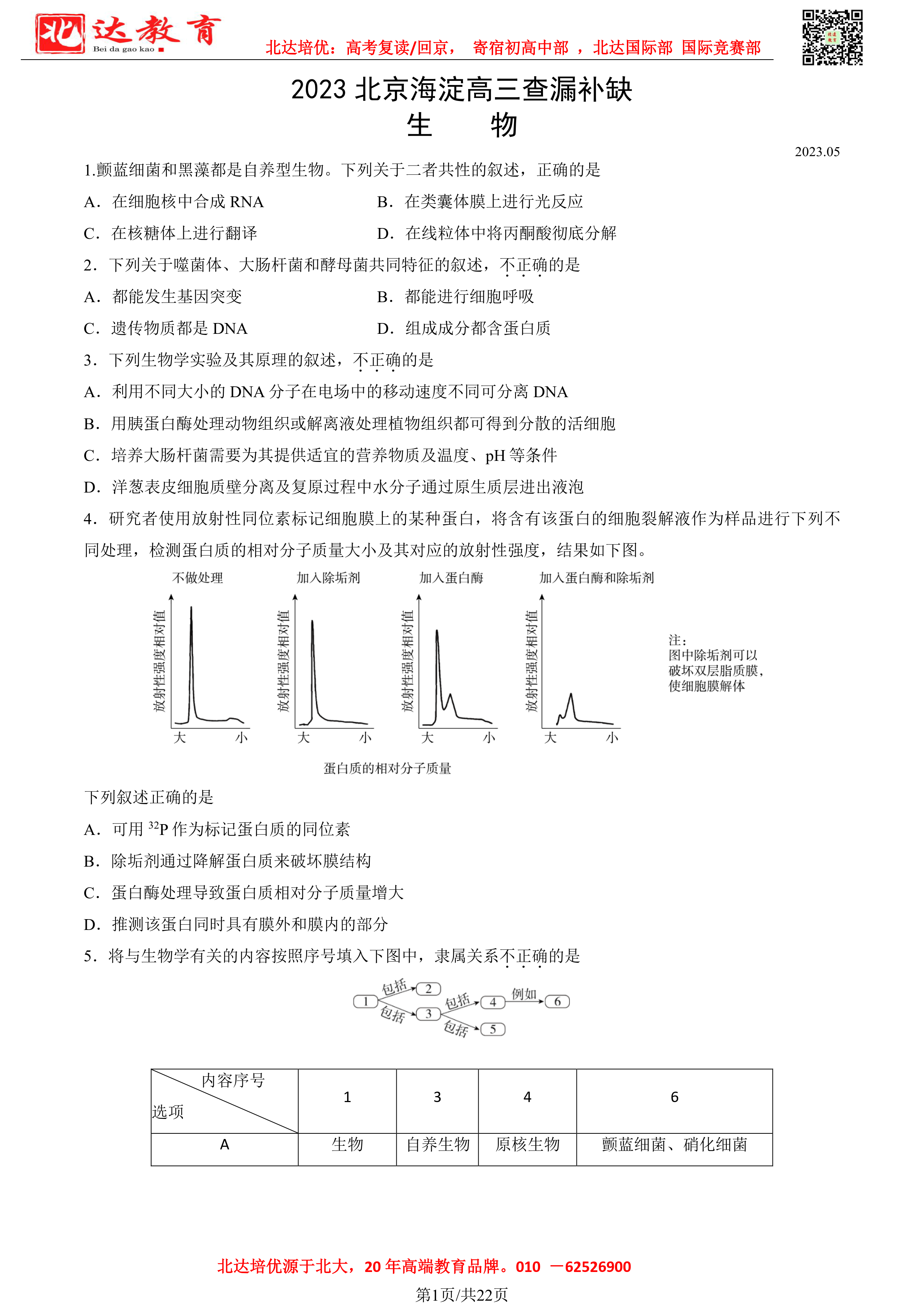 2023年北京海淀高三二模考试已结束,admw360高考复读学校整理了生物查漏补缺材料试题及答案,分享给同学们。详情如下: