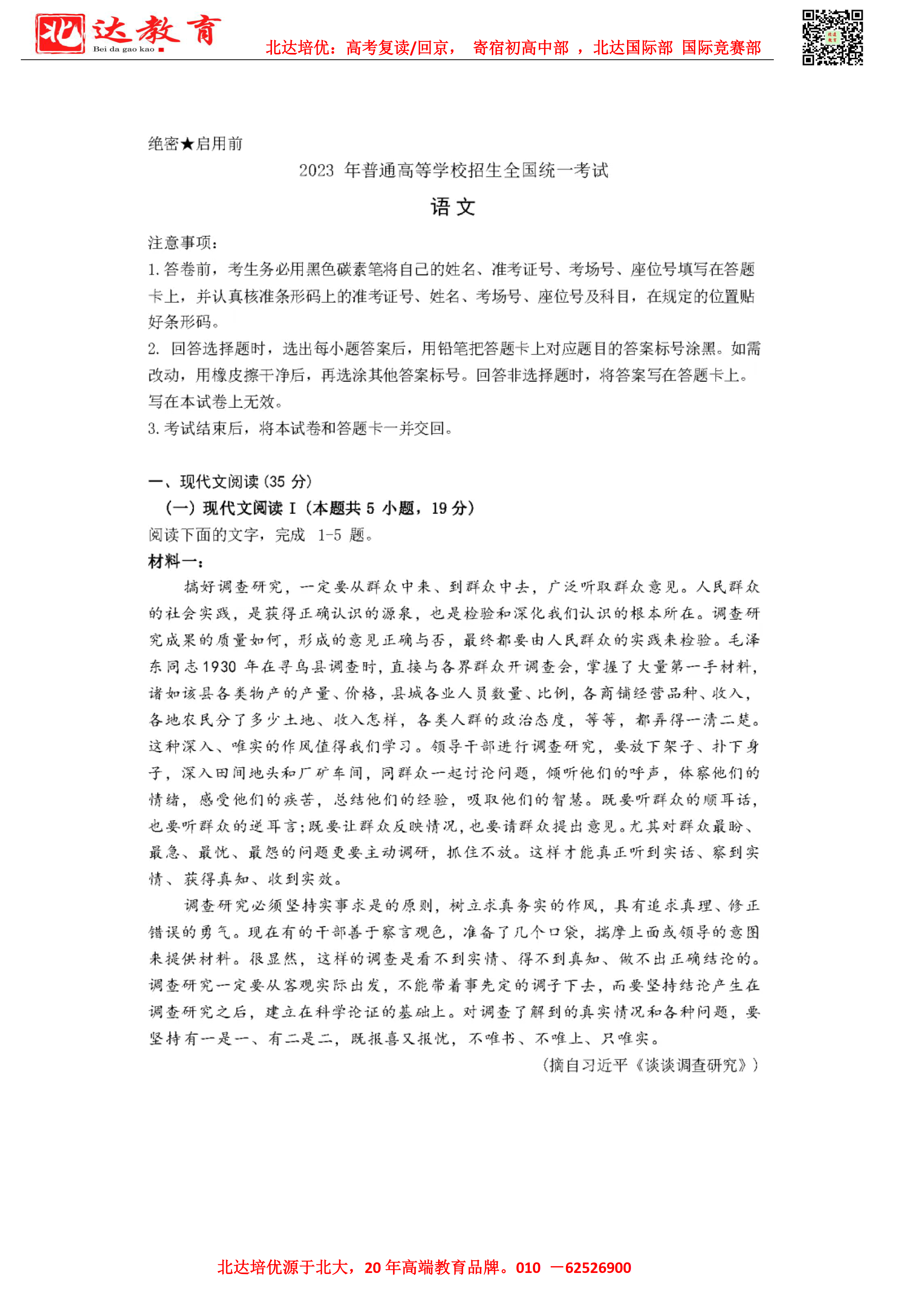 2023高考语文考试已结束,admw360复读学校整理了2023高考全国新课标2卷语文试题及解析,详情如下: