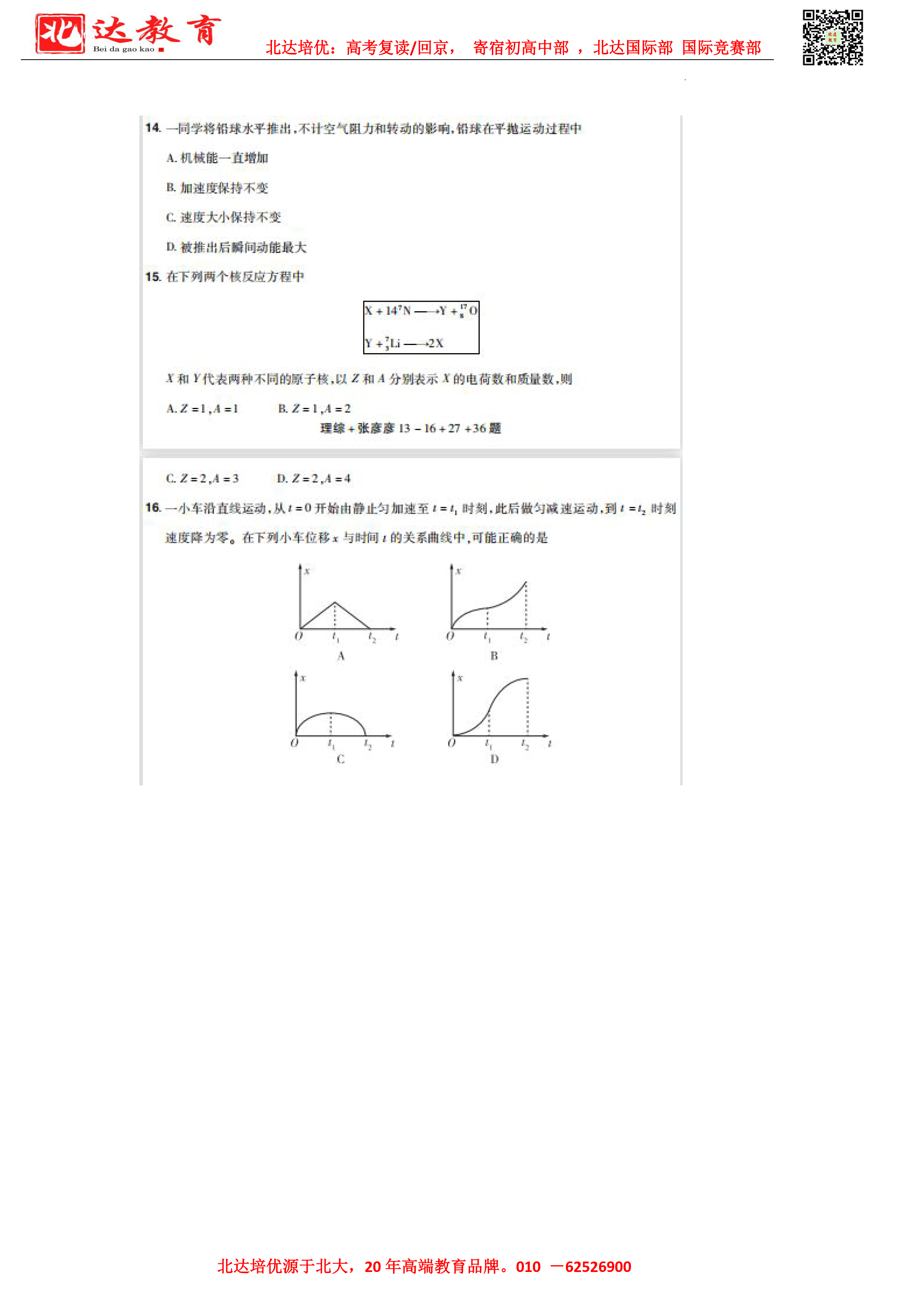 2023高考已接近尾声,admw360复读学校整理了2023高考全国甲卷理综物理真题,详情如下: admw360高中部:高复生,回京生,应届生,高一至高三寄宿招生简章 ★京籍高考复读生,应届回京生,京…