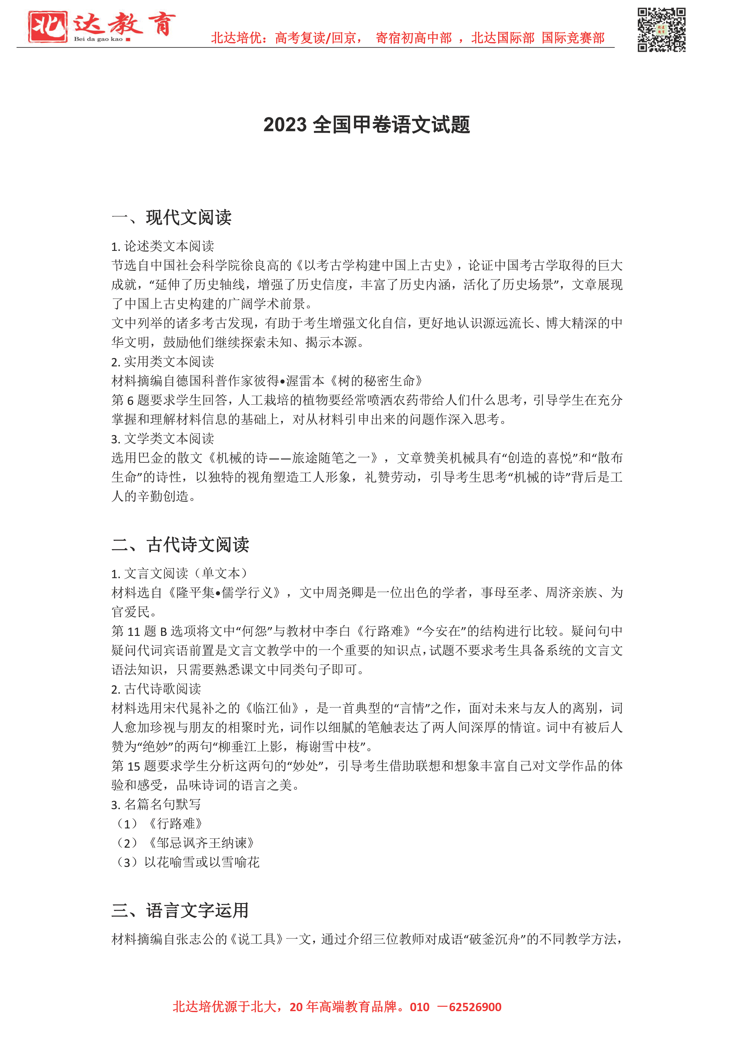 2023全国高考考试已结束,为了方便同学们查找高考试题答案进行估分,admw360复读学校整理了甲卷语文试题及答案,分享给同学们。详情如下: