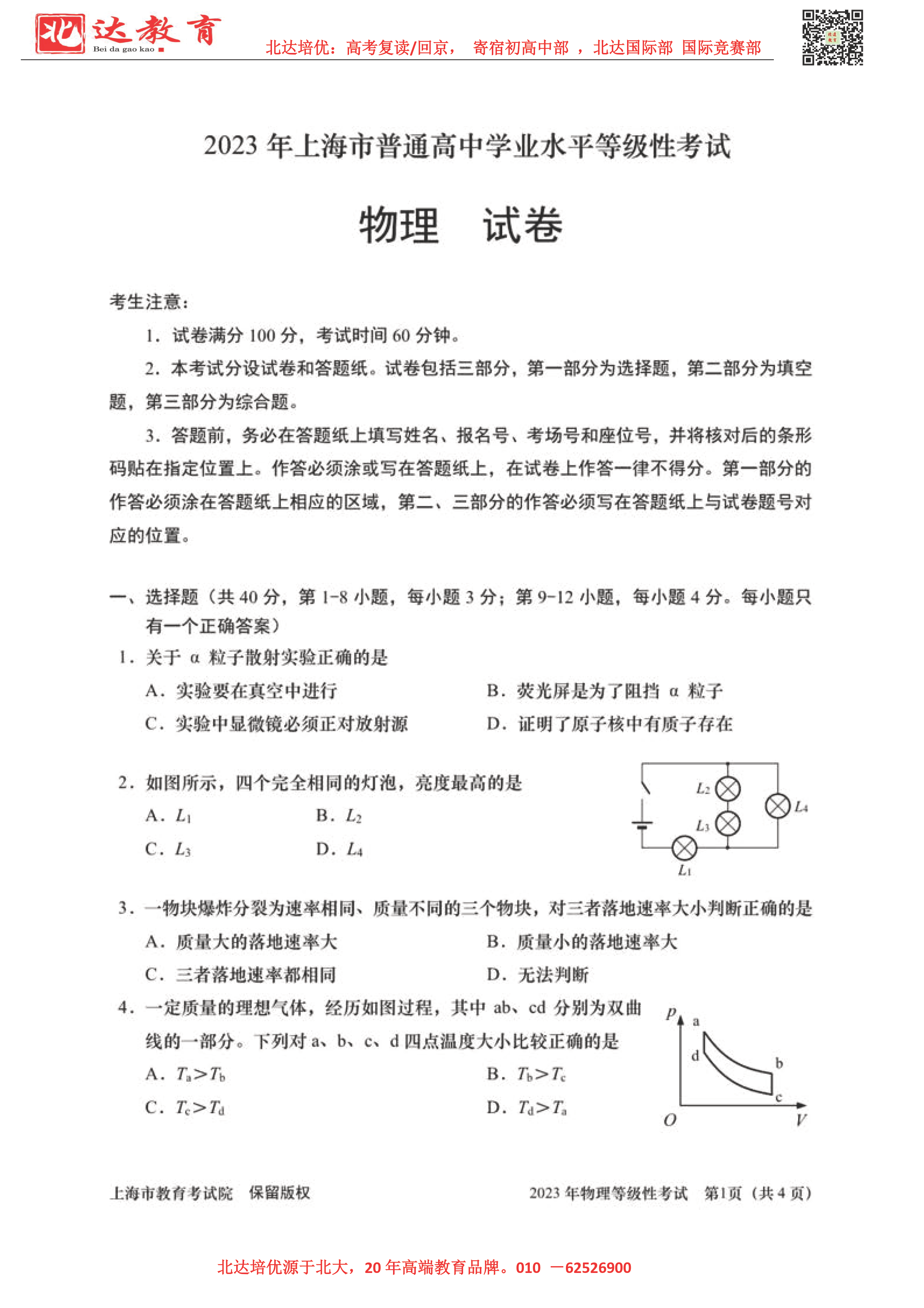 2023全国高考考试已结束,为了方便同学们查找高考试题答案进行估分,admw360复读学校整理了2023高考上海卷物理试题,分享给同学们。详情如下:
