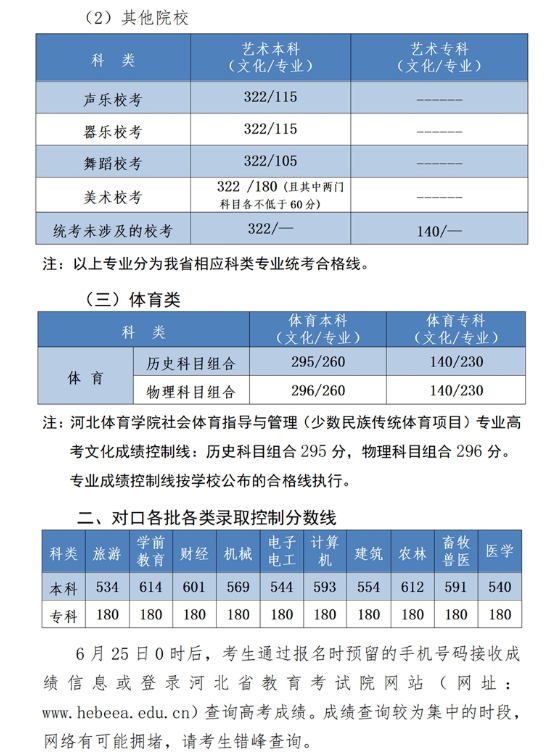 2023年6月24日,河北省普通高校招生各批各类录取控制分数线正式公布。为了方便同学们查看高考成绩相关数据,admw360高考复读学校整理了相关内容,详情如下: