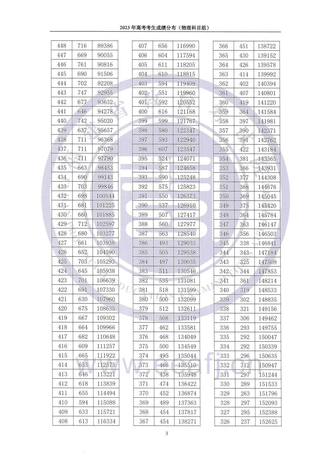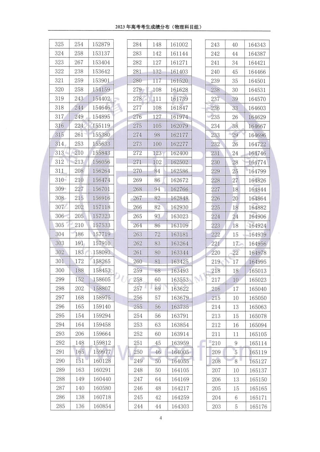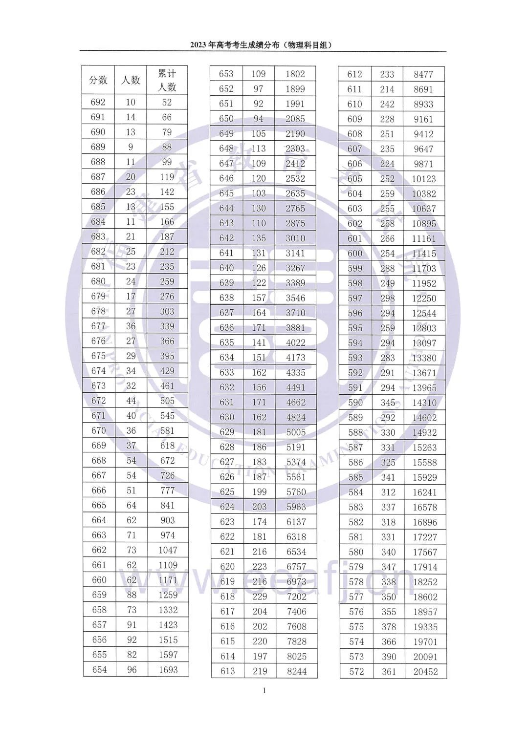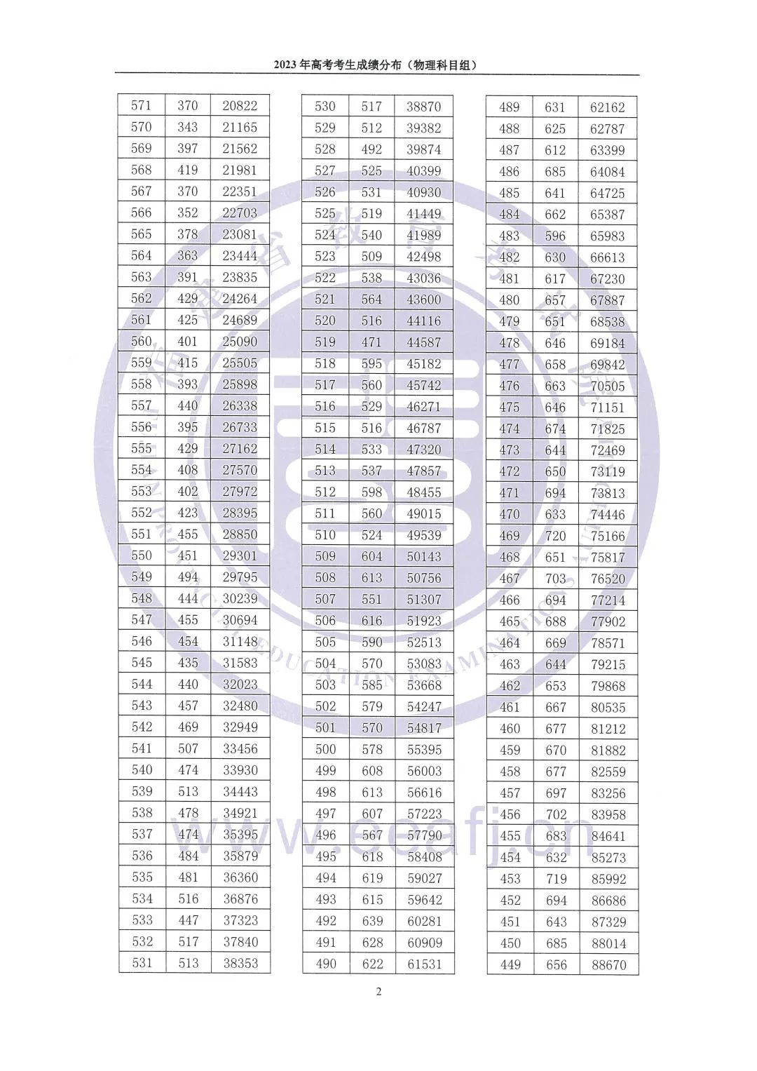 目前福建2023高考最低控制录取分数线及高考成绩一分一段表已公布,为了方便同学们查看高考成绩相关数据,admw360复读学校整理了物理组成绩一分一段表相关内容,详情如下: