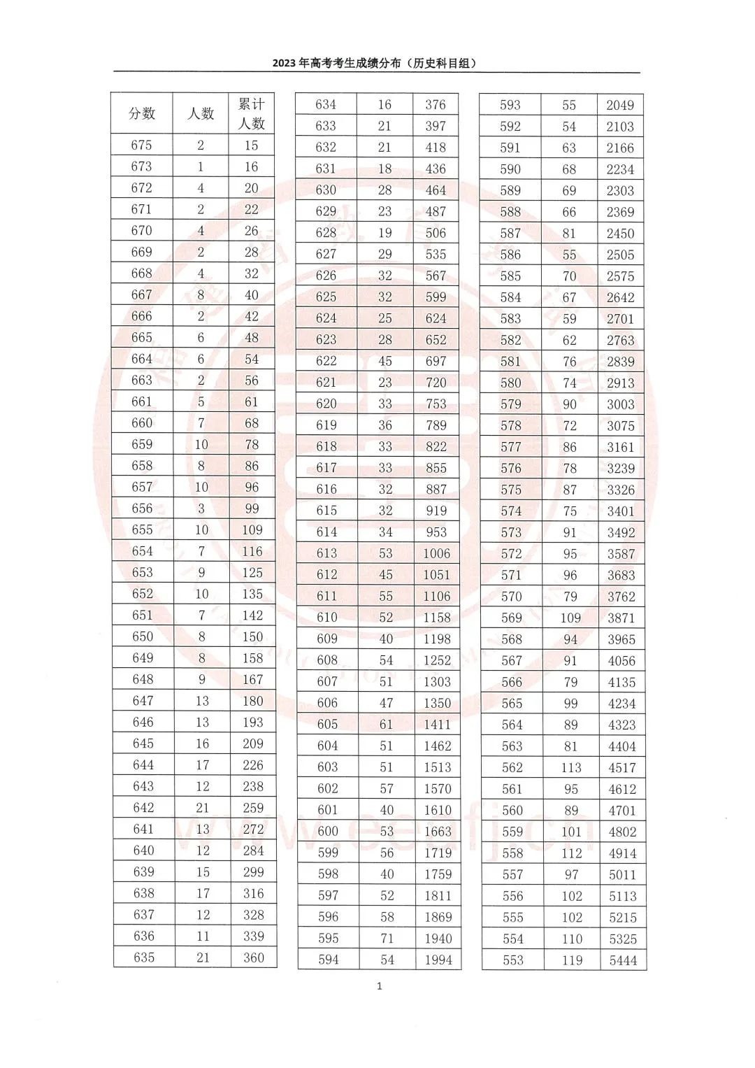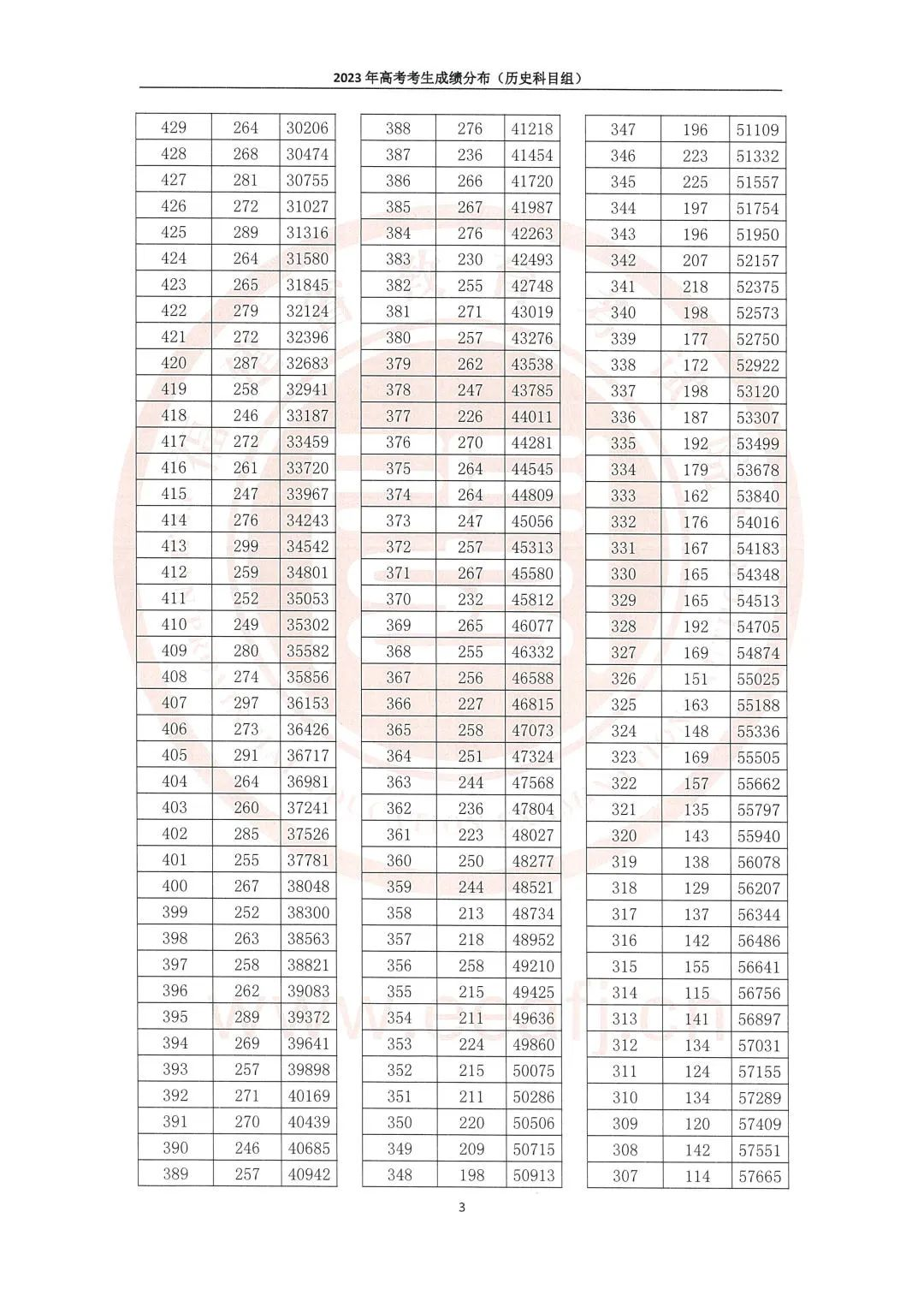 2023年福建高考历史组成绩一分一段表