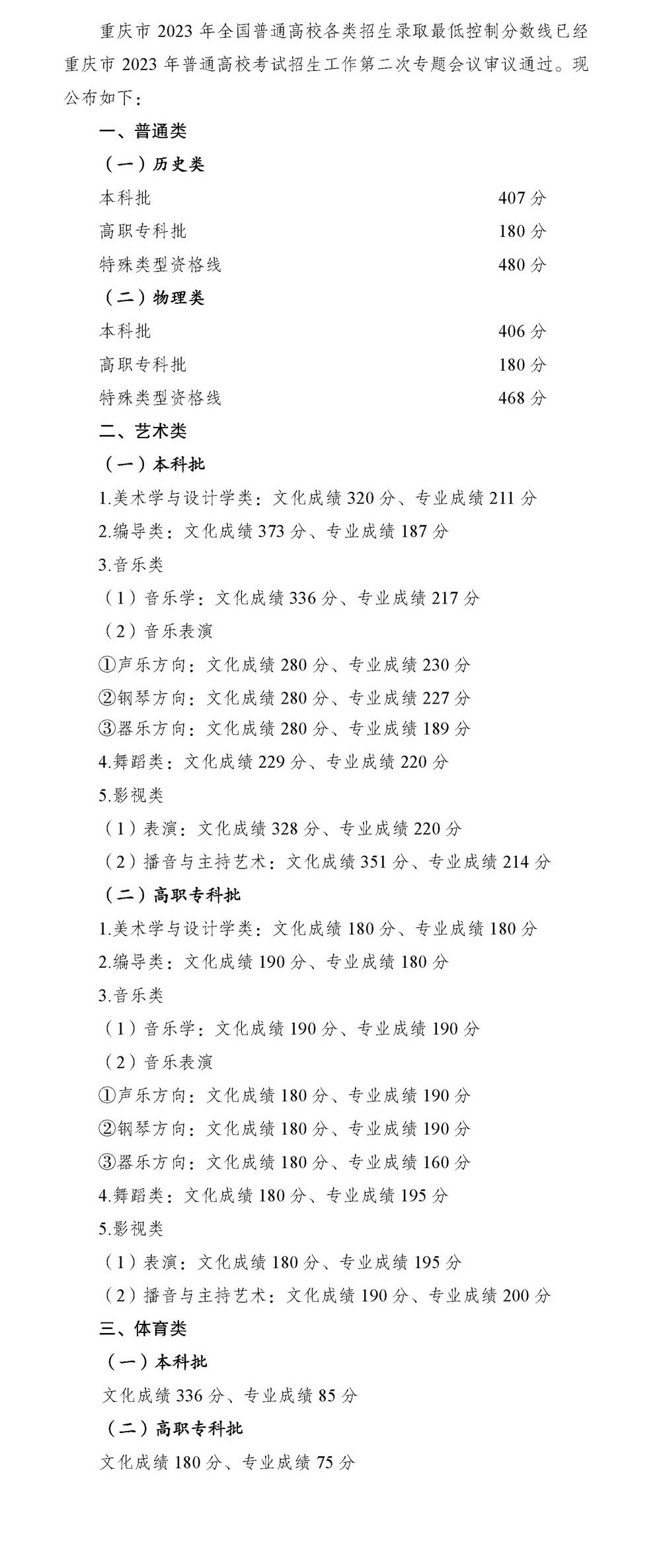 2023年重庆普通高等学校招生录取最低控制分数线已公布,admw360高考复读学校整理了相关内容,详情如下: