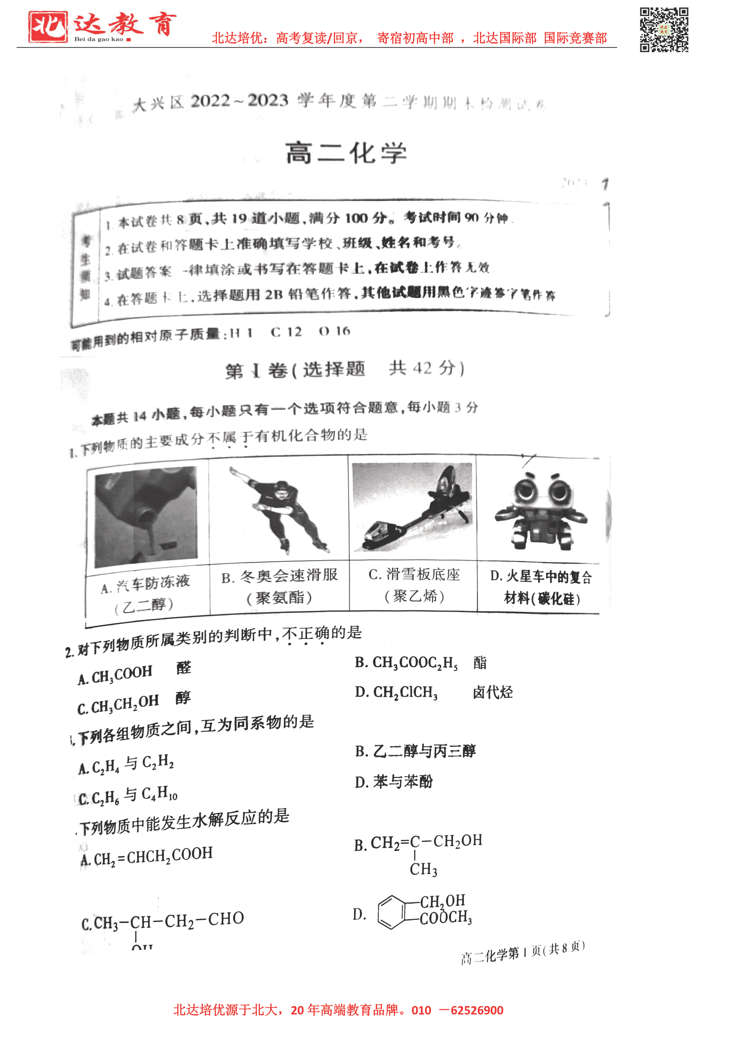 2022-2023学年北京大兴区高二下学期期末化学试题及答案