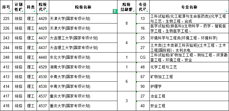 在河南提前批征集志愿阶段,国家专项计划中吉林大学有32个空余名额,东北大学有26个名额,中南大学有24个名额,湖南大学有23个名额,山东大学有22个名额,华南理工大学有20个空余名额。这6所985高校的空余名额都超过20个,还有部分院校在10余个,这种情况确实让人难以预料。