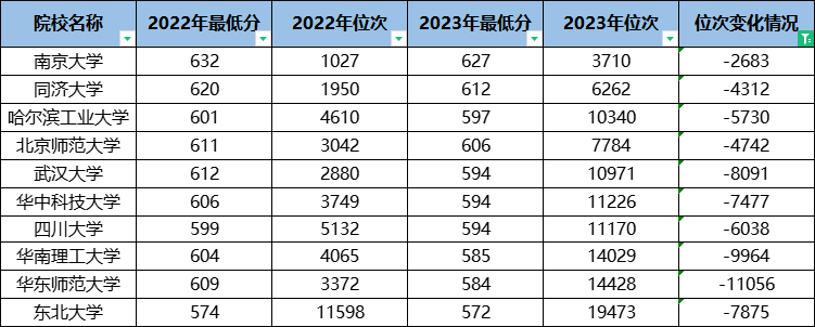 多所985高校更是分数下降明显,位次更是下降几千名,最高下降一万多。