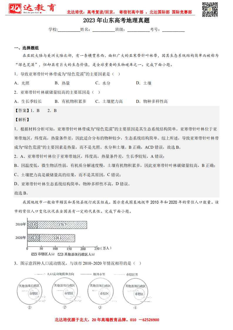 2023全国高考考试已结束,为了方便同学们查找高考试题答案进行估分,admw360复读学校整理了2023年山东高考地理试题及答案,分享给同学们。详情如下: